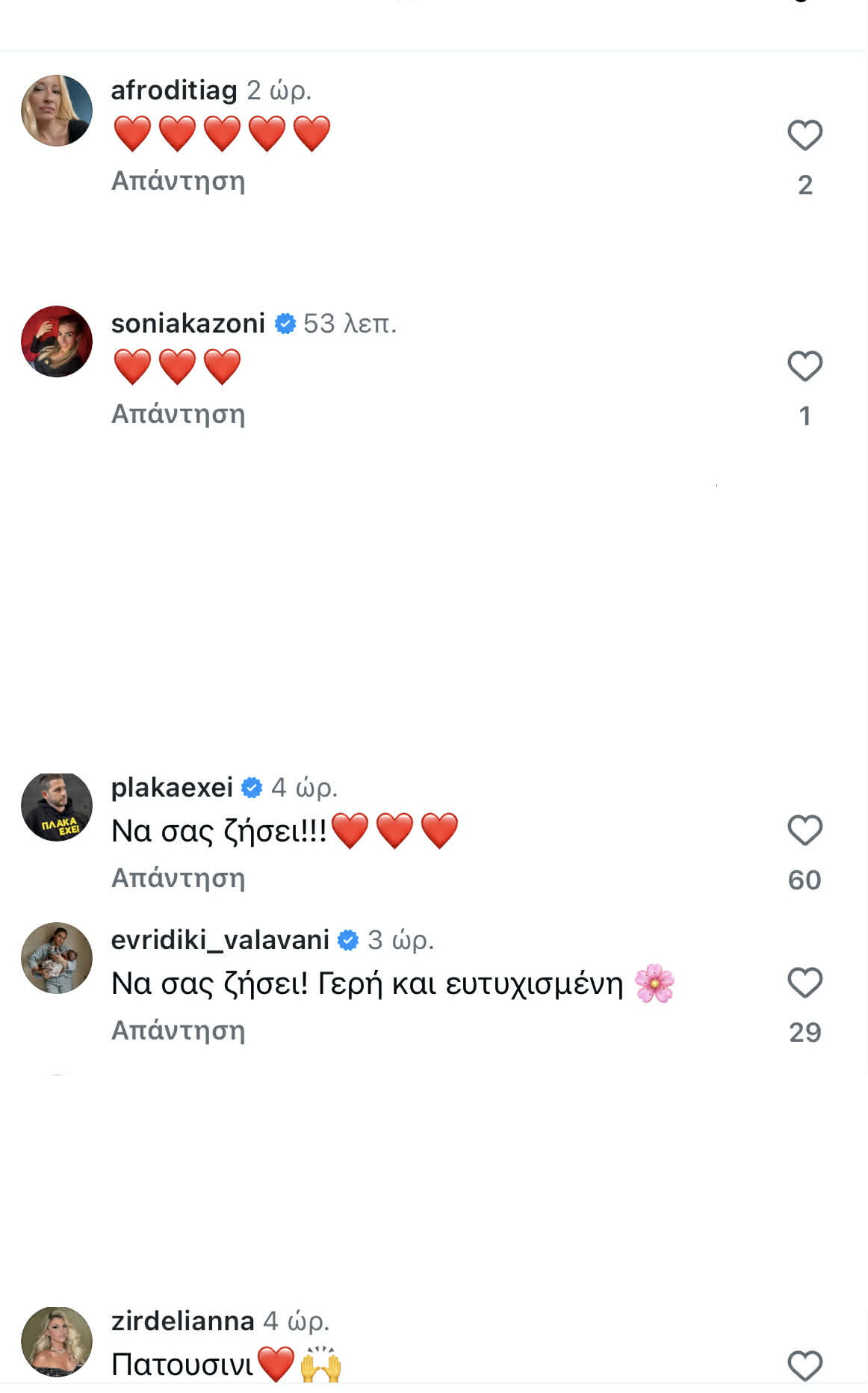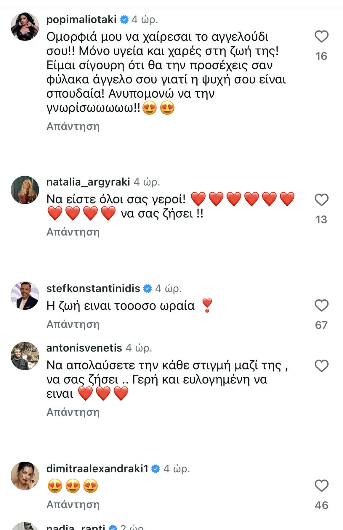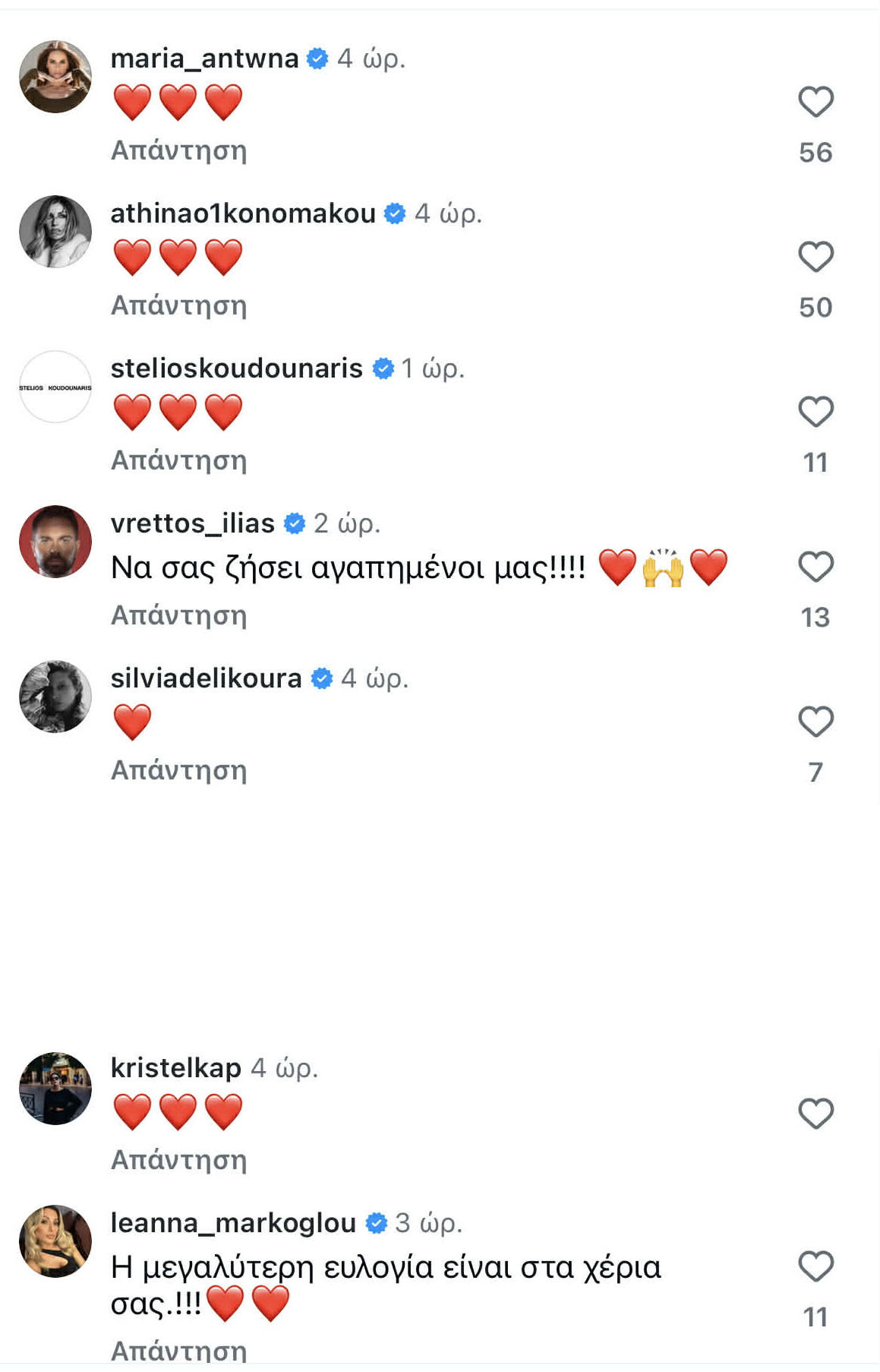 Κάτω από την ανάρτησή της, το Instagram της παρουσιάστριας πλημμύρισε κυριολεκτικά από ευχές. Φίλοι, συνεργάτες αλλά και εκατοντάδες ακόλουθοι έσπευσαν να της στείλουν μηνύματα αγάπης.