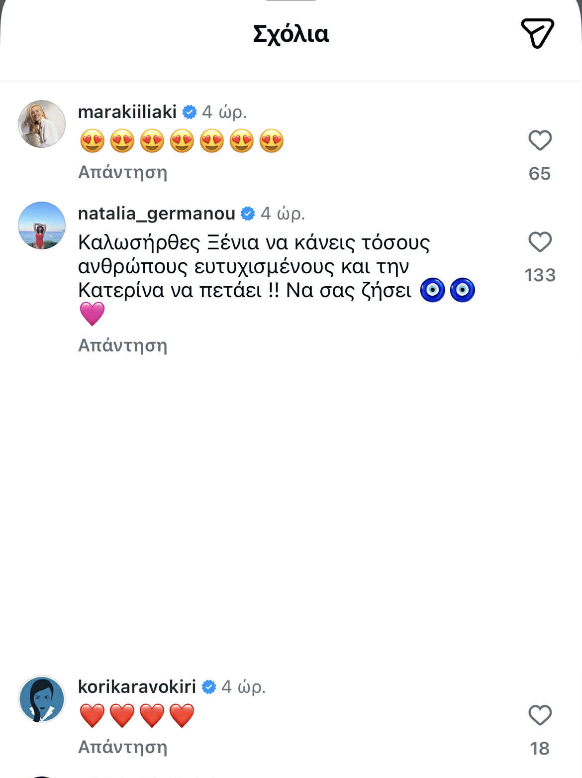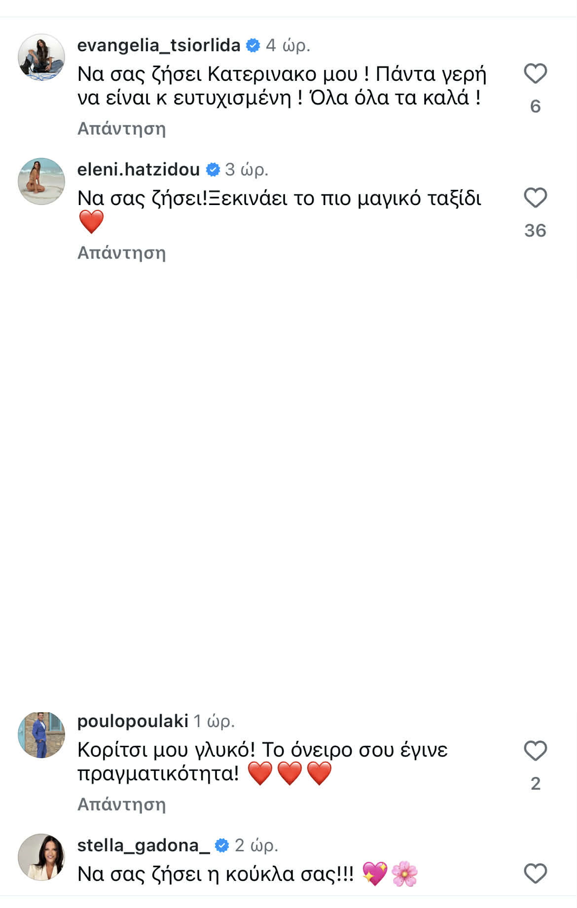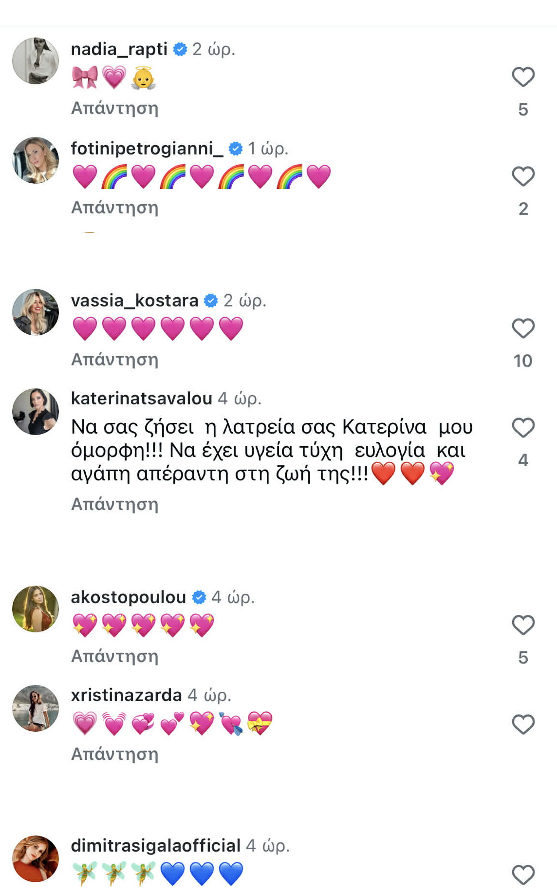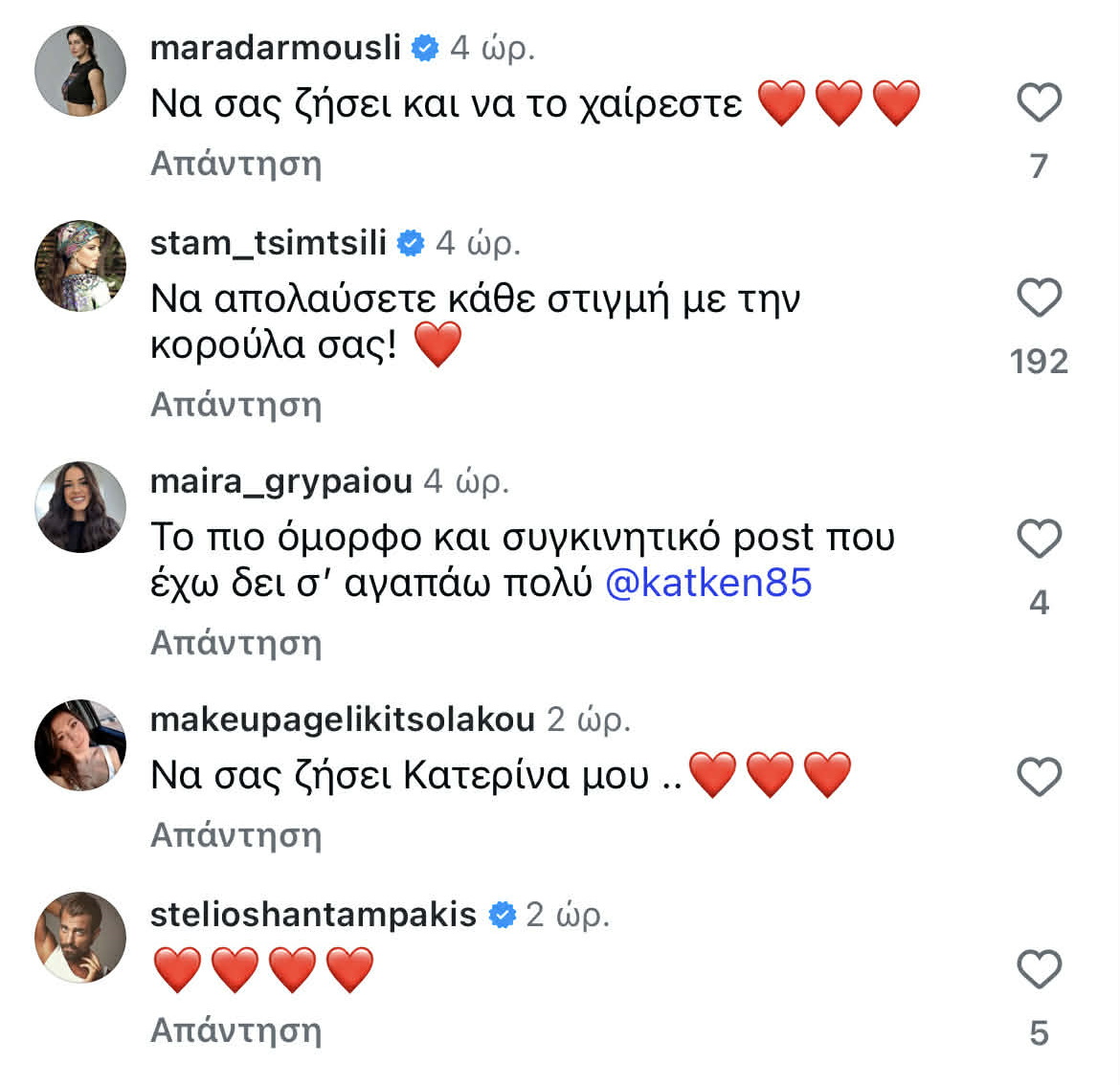 Κάτω από την ανάρτησή της, το Instagram της παρουσιάστριας πλημμύρισε κυριολεκτικά από ευχές. Φίλοι, συνεργάτες αλλά και εκατοντάδες ακόλουθοι έσπευσαν να της στείλουν μηνύματα αγάπης.