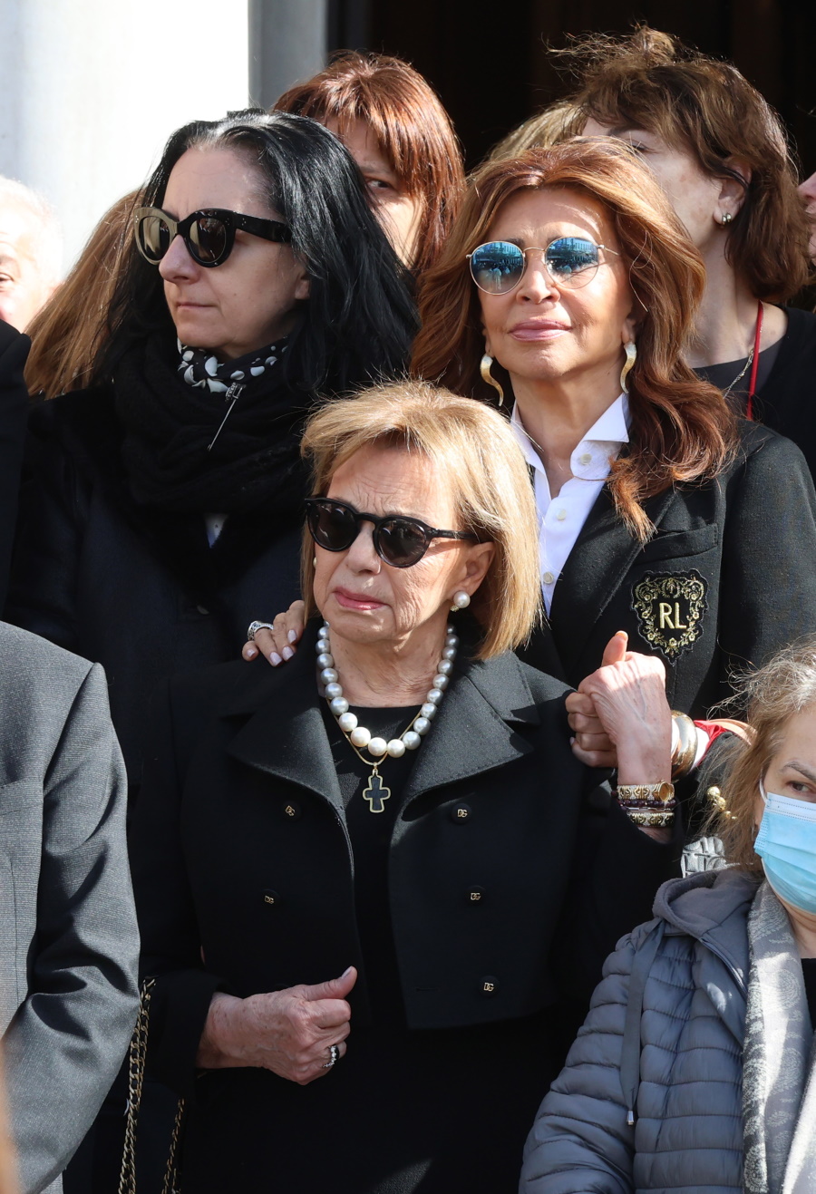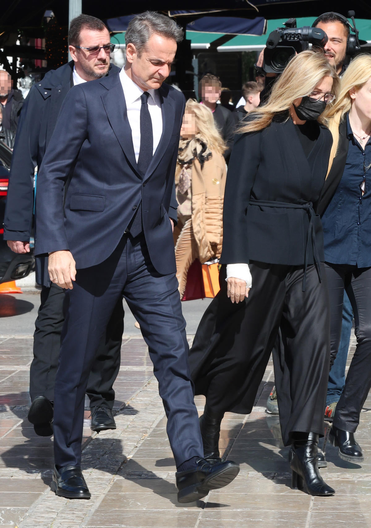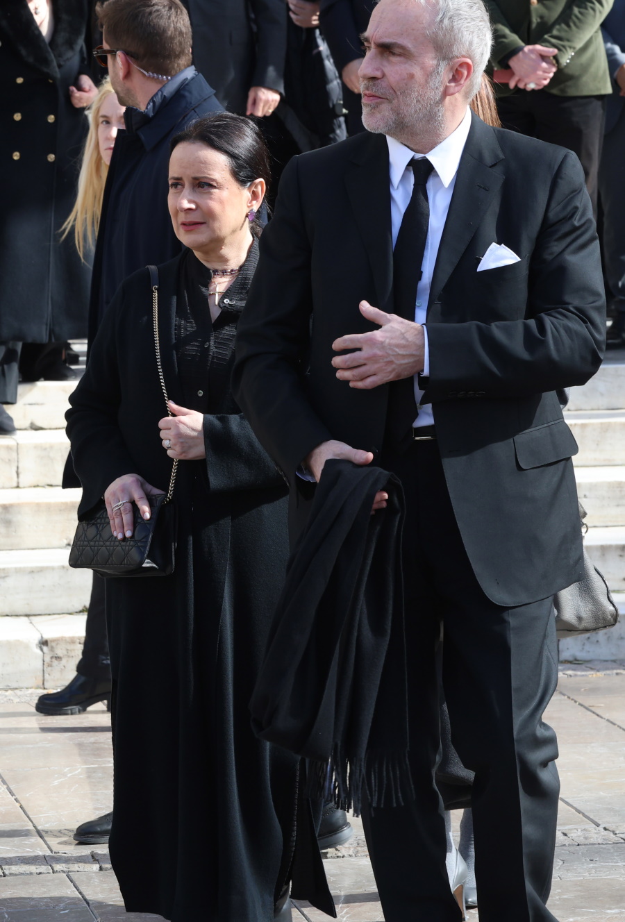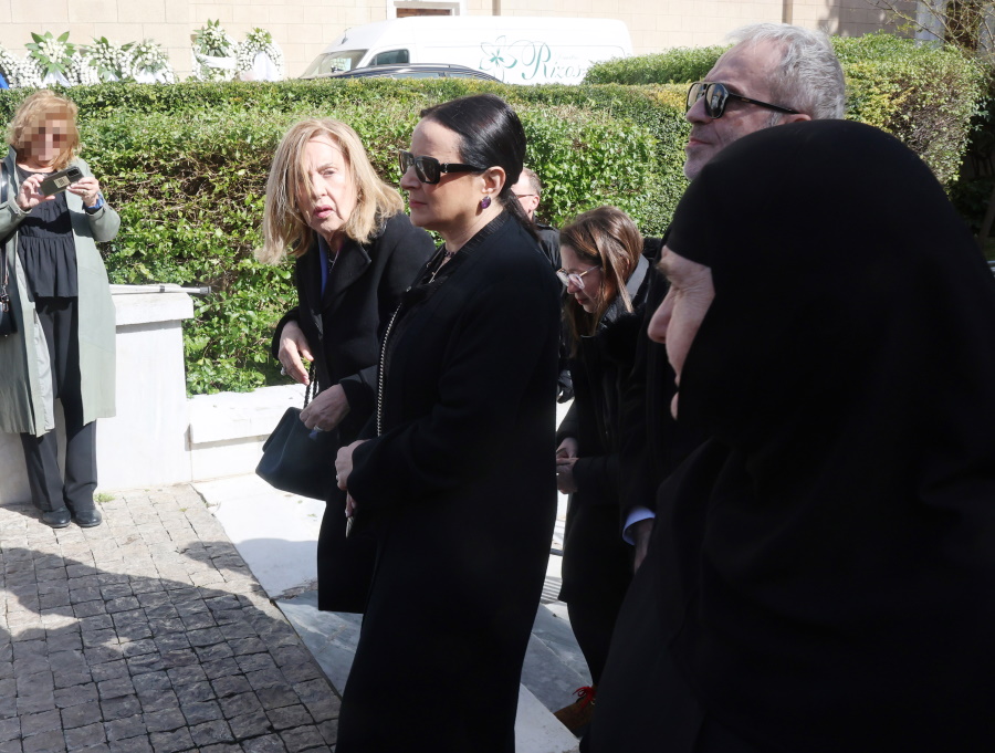 Τραγική φιγούρα η κόρη της, Μαρί-Ελέν Αρβελέρ, η οποία απαθανατίστηκε συγκινημένη να εισέρχεται μέσα στην Μητρόπολη Αθηνών.