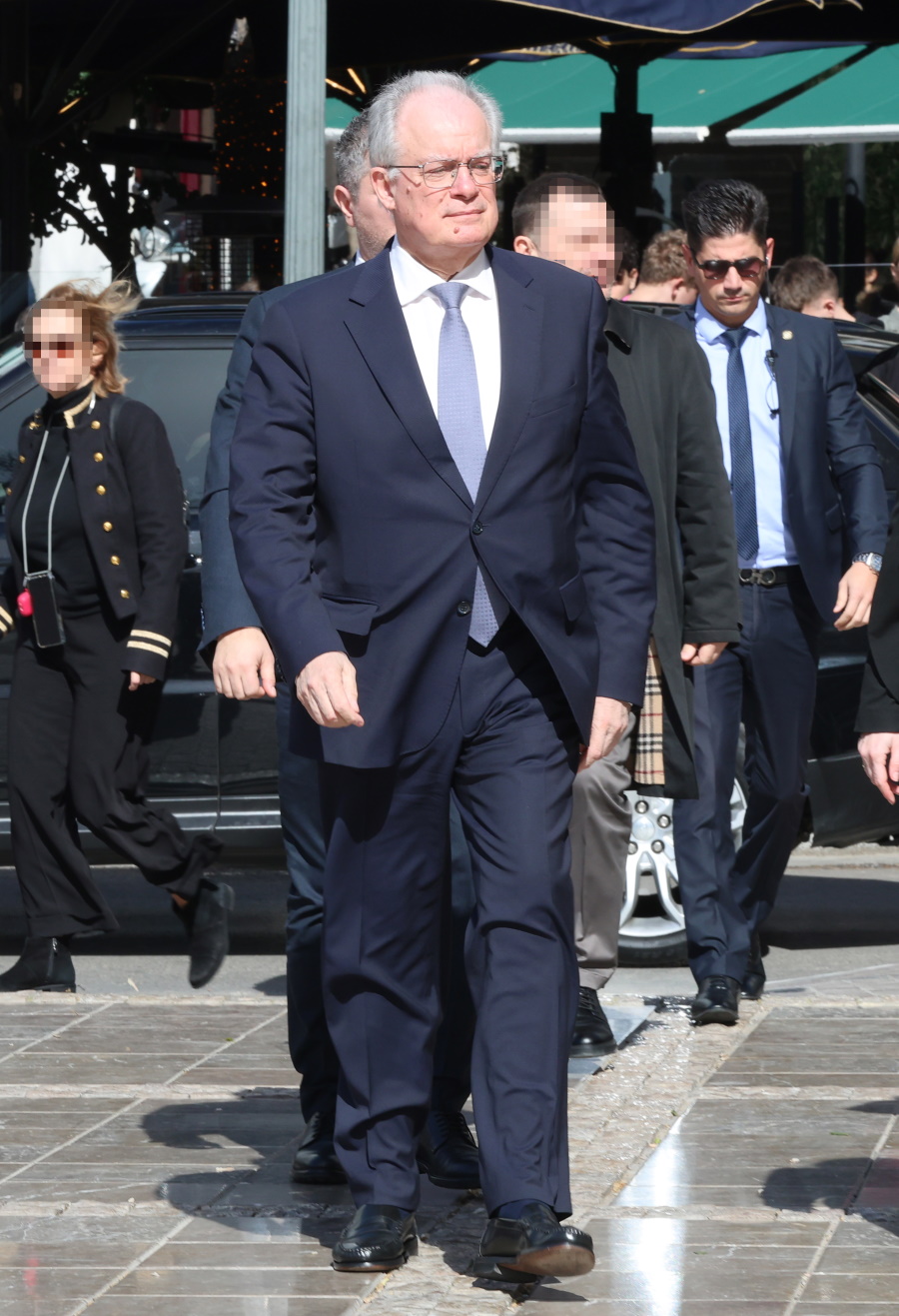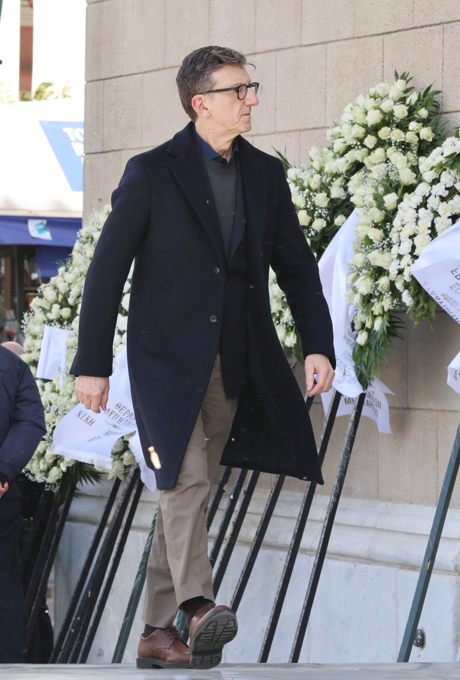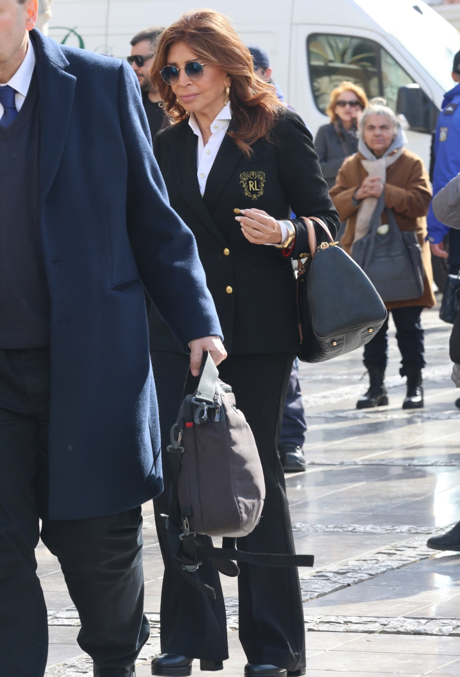 Τραγική φιγούρα η κόρη της, Μαρί-Ελέν Αρβελέρ, η οποία απαθανατίστηκε συγκινημένη να εισέρχεται μέσα στην Μητρόπολη Αθηνών.