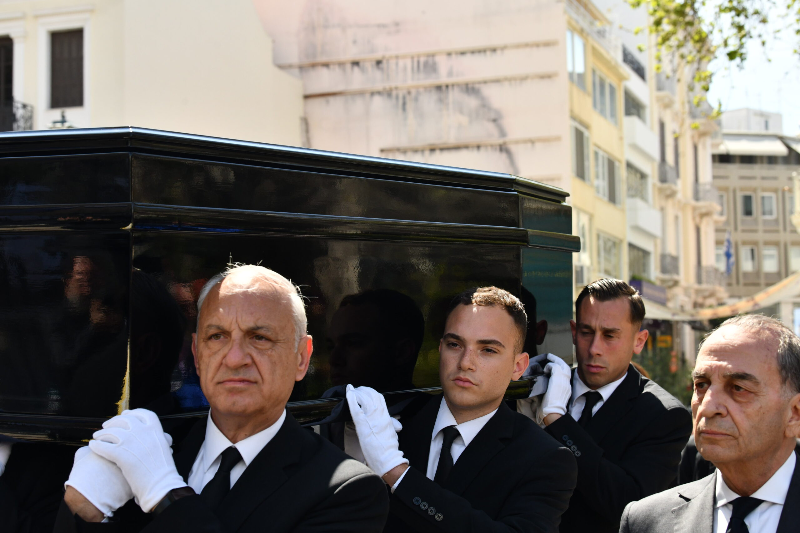 Κατά τη μεταφορά της σορού από το παρεκκλήσι του Αγίου Ελευθερίου στη Μητρόπολη Αθηνών, η κόρη της Τζωρτίνα Σερπιέρη μαζί με τα παιδιά της έδειχνε συντετριμμένη.