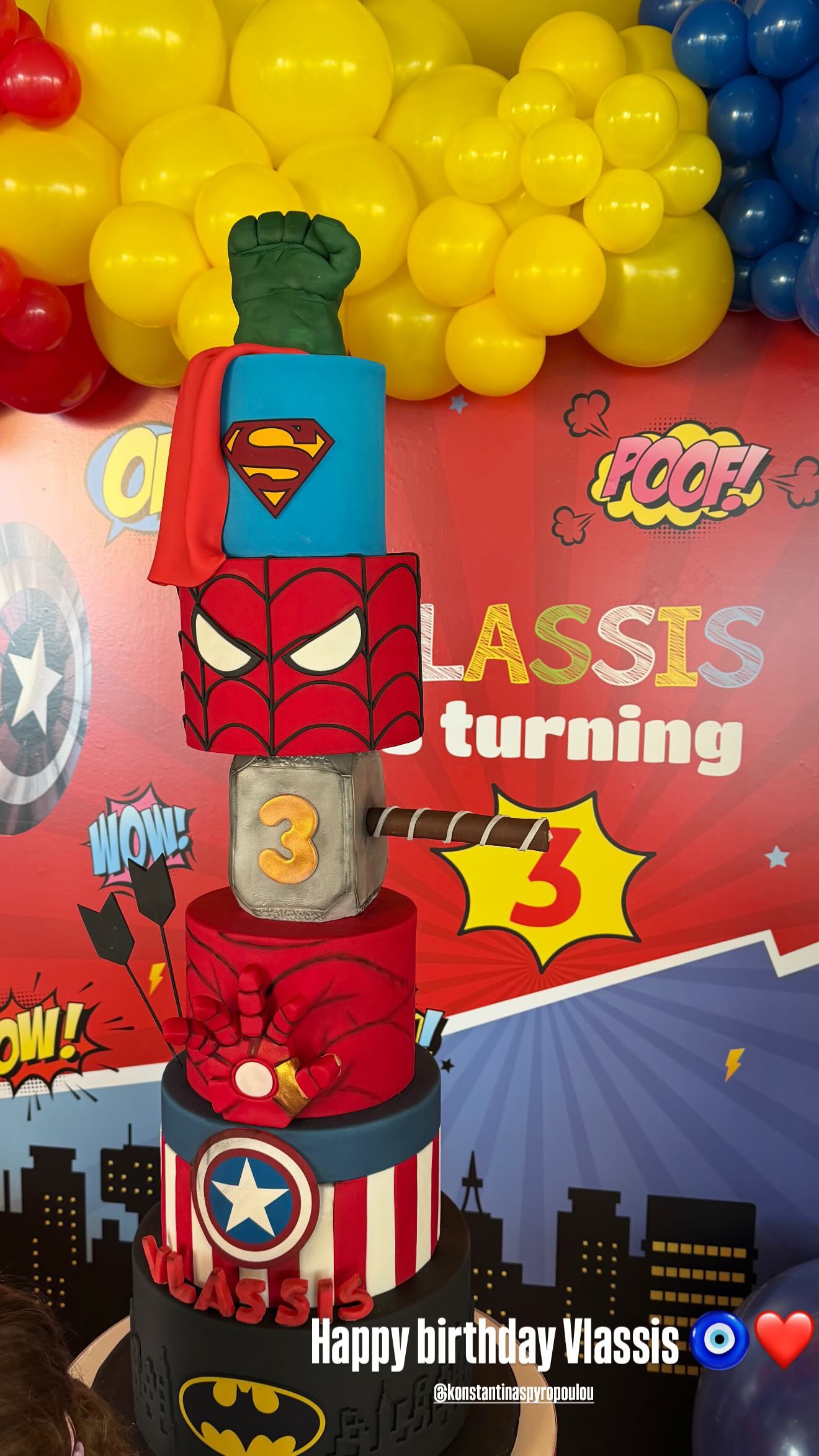 Η παρουσιάστρια, μέσα από τον λογαριασμό της στο instagram μοιράστηκε βίντεο και φωτογραφίες από το παιδικό πάρτι και την πανύψηλη τούρτα με τους αγαπημένους σούπερ ήρωες του γιου της.