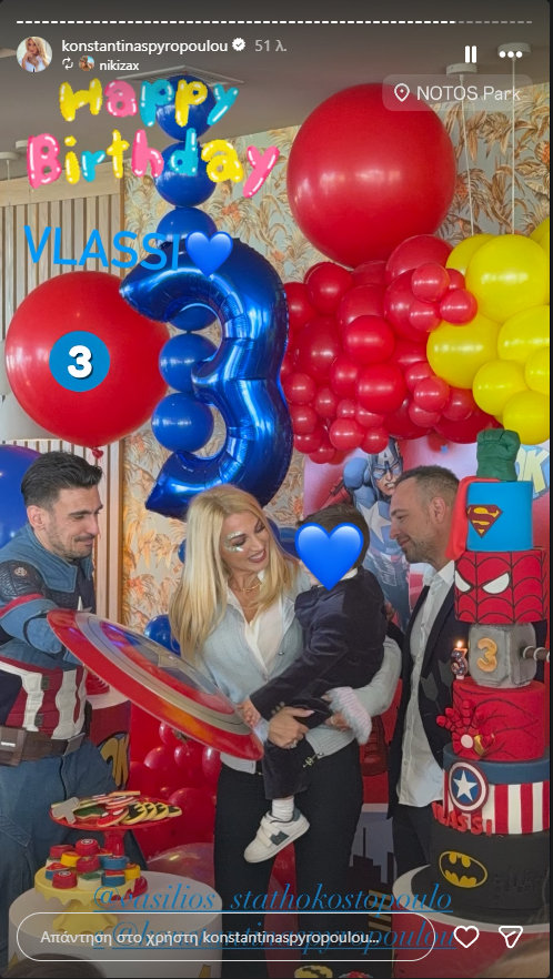 Με ένα μεγάλο πάρτι η Κωνσταντίνα Σπυροπούλου και ο Βασίλης Σταθοκωστόπουλος γιόρτασαν τα γενέθλια του γιου τους, Βλάσση, ο οποίος έγινε τριών ετών.