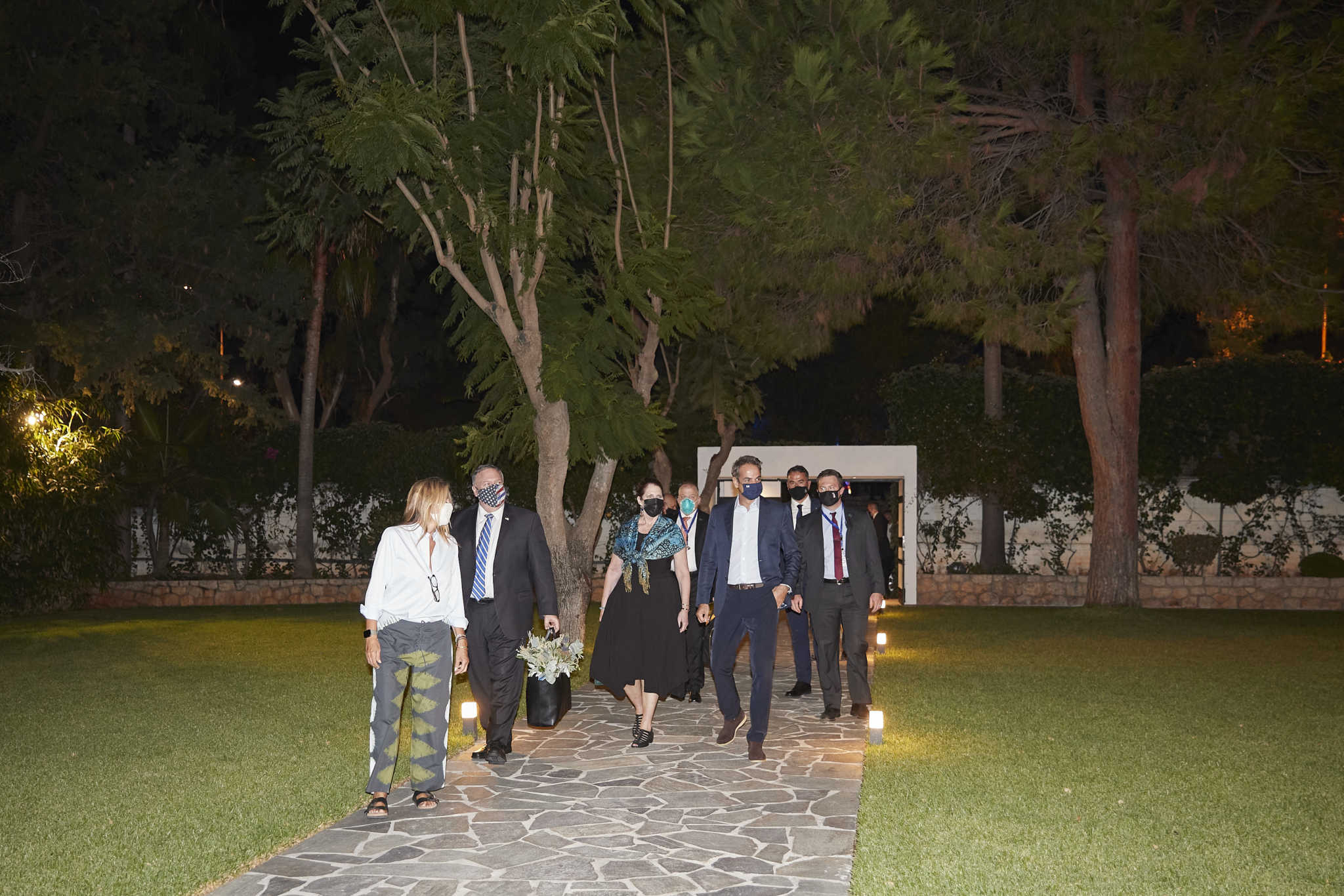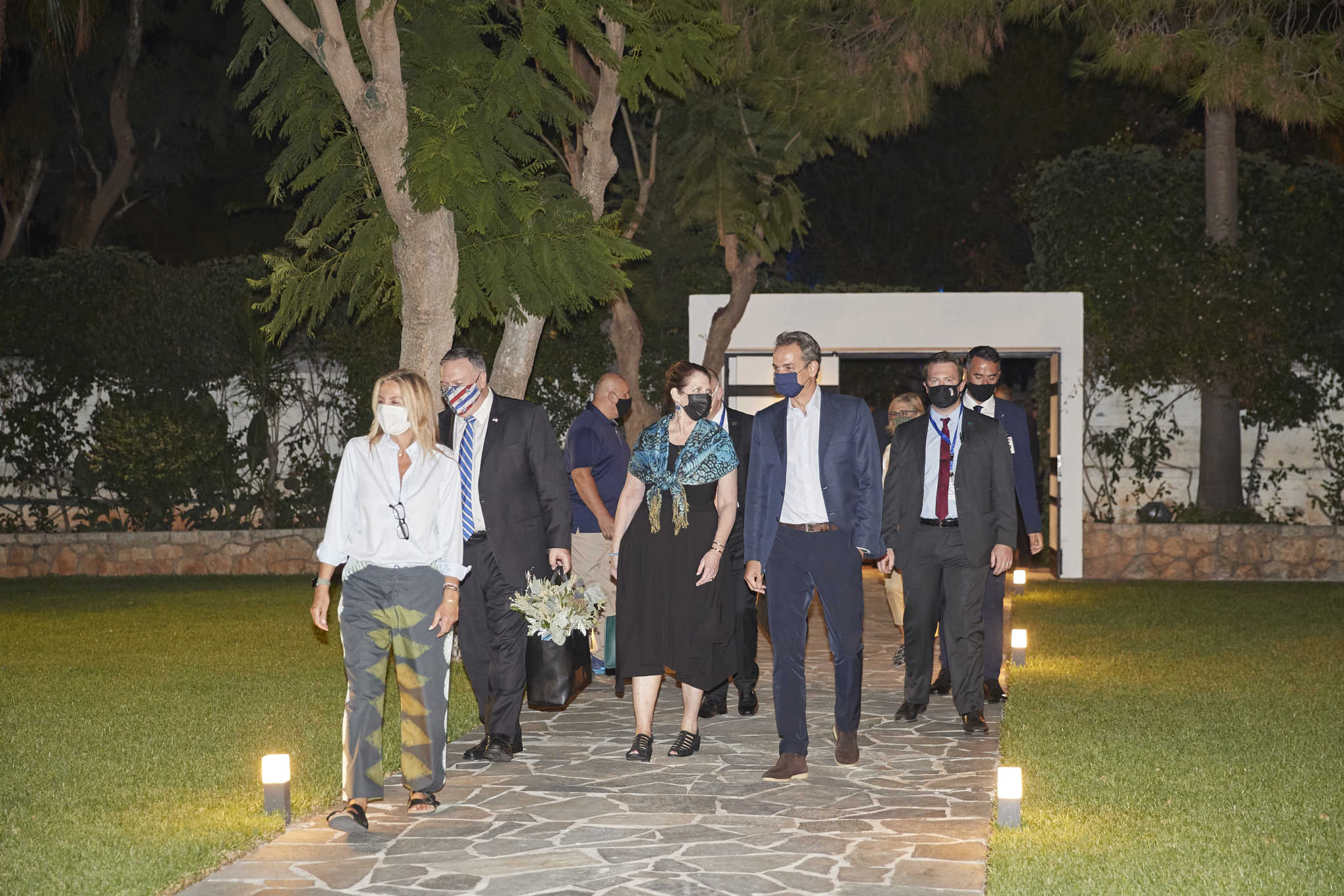 Ο Πρωθυπουργός Κυριάκος Μητσοτάκης και η σύζυγός του Μαρέβα Γκραμπόφσκι – Μητσοτάκη υποδέχθηκαν στις 20.45 το βράδυ τον Υπουργό Εξωτερικών των ΗΠΑ Μάικ Πομπέο και τη σύζυγό του, Σούζαν στο στο πατρικό σπίτι του Πρωθυπουργού στα Χανιά.