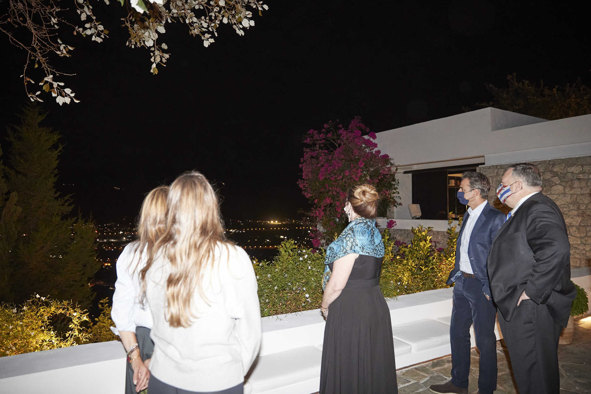 Οι κ. Μητσοτάκης και Πομπέο συζήτησαν για λίγο στη βεράντα του σπιτιού με θέα το λιμάνι της Σούδας.