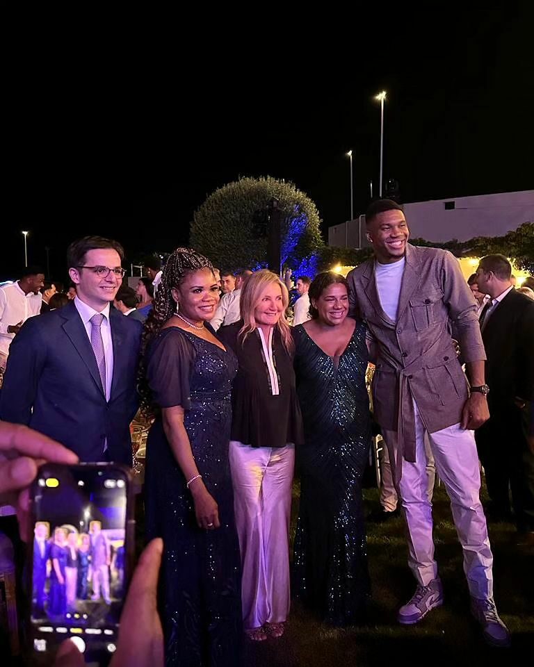 Στο πλευρό του Γιάννη Αντετοκούνμπο ήταν η σύζυγός του, Mariah, η μητέρα του και τα αδέρφια του. Σήμερα, Σάββατο 1/7 η Μαρέβα Γκραμπόφσκι δημοσίευσε μια φωτογραφία από την συγκεκριμένη εκδήλωση, στην οποία τη βλέπουμε να φωτογραφίζεται μαζί με τον γιο της, Κωνσταντίνο, δίπλα στην οικογένεια Αντετοκούνμπο.