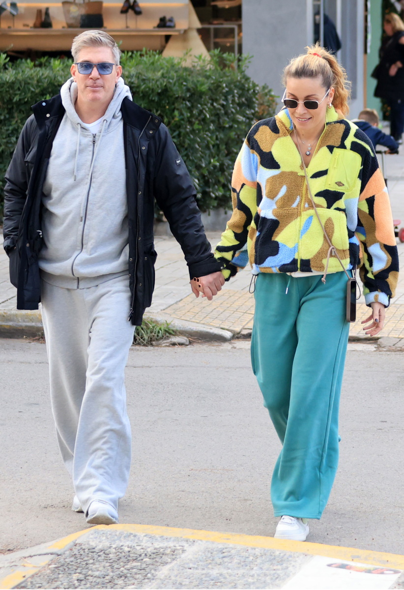Η Μαριέττα Χρουσαλά και ο σύζυγός της, Λέων Πατίτσας απαθανατίστηκαν πρόσφατα από τον φωτογραφικό φακό σε μια χαλαρή βόλτα στους δρόμους της Γλυφάδα.