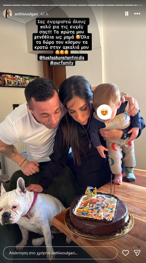 «Σας ευχαριστώ όλους πολύ για τις ευχές σας. Τα πρώτα μου γενέθλια ως μαμά. Όλα τα δώρα του κόσμου τα κρατώ στην αγκαλιά μου», έγραψε στη δεύτερη φωτογραφία που δημοσίευσε η Ανθή Βούλγαρη.