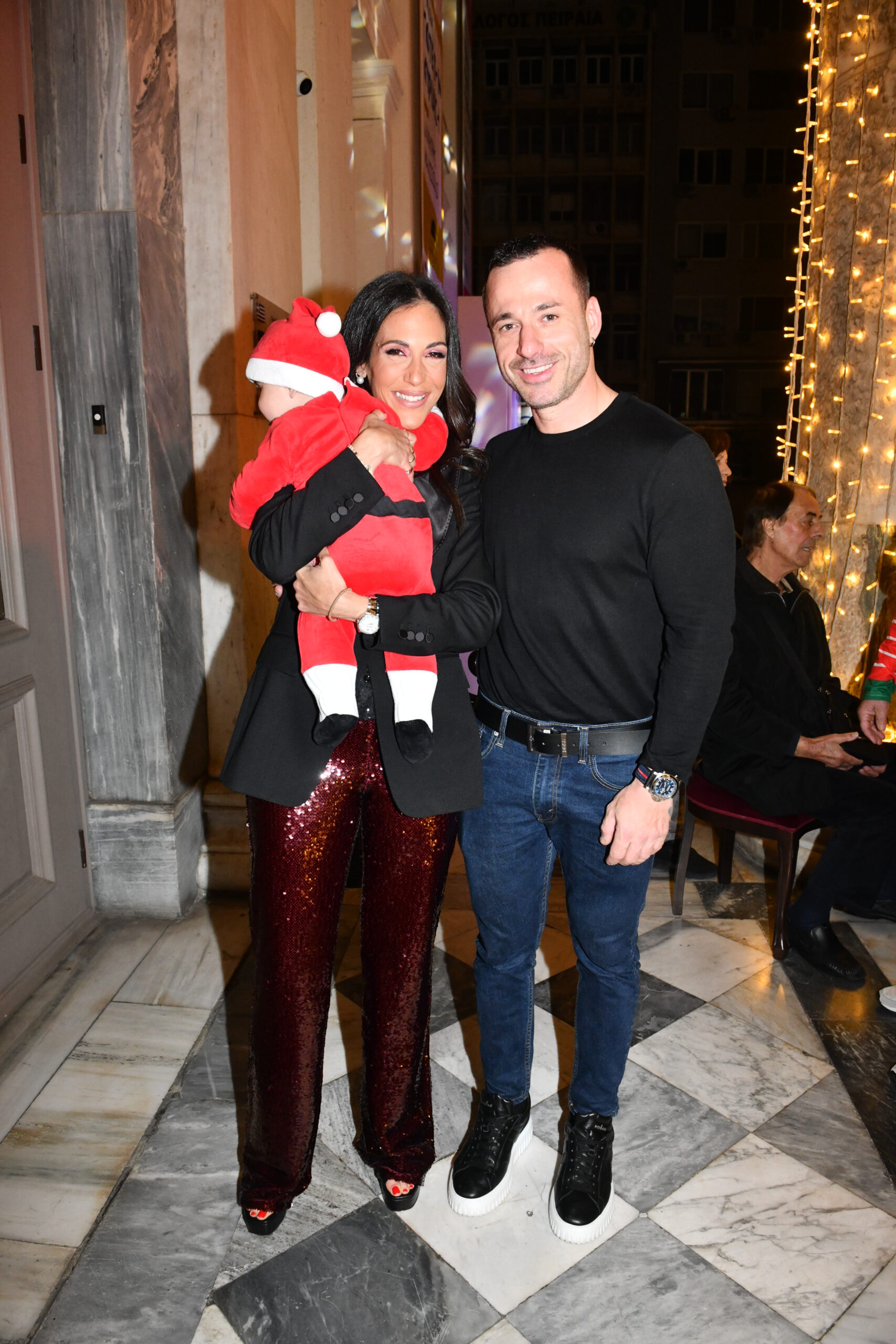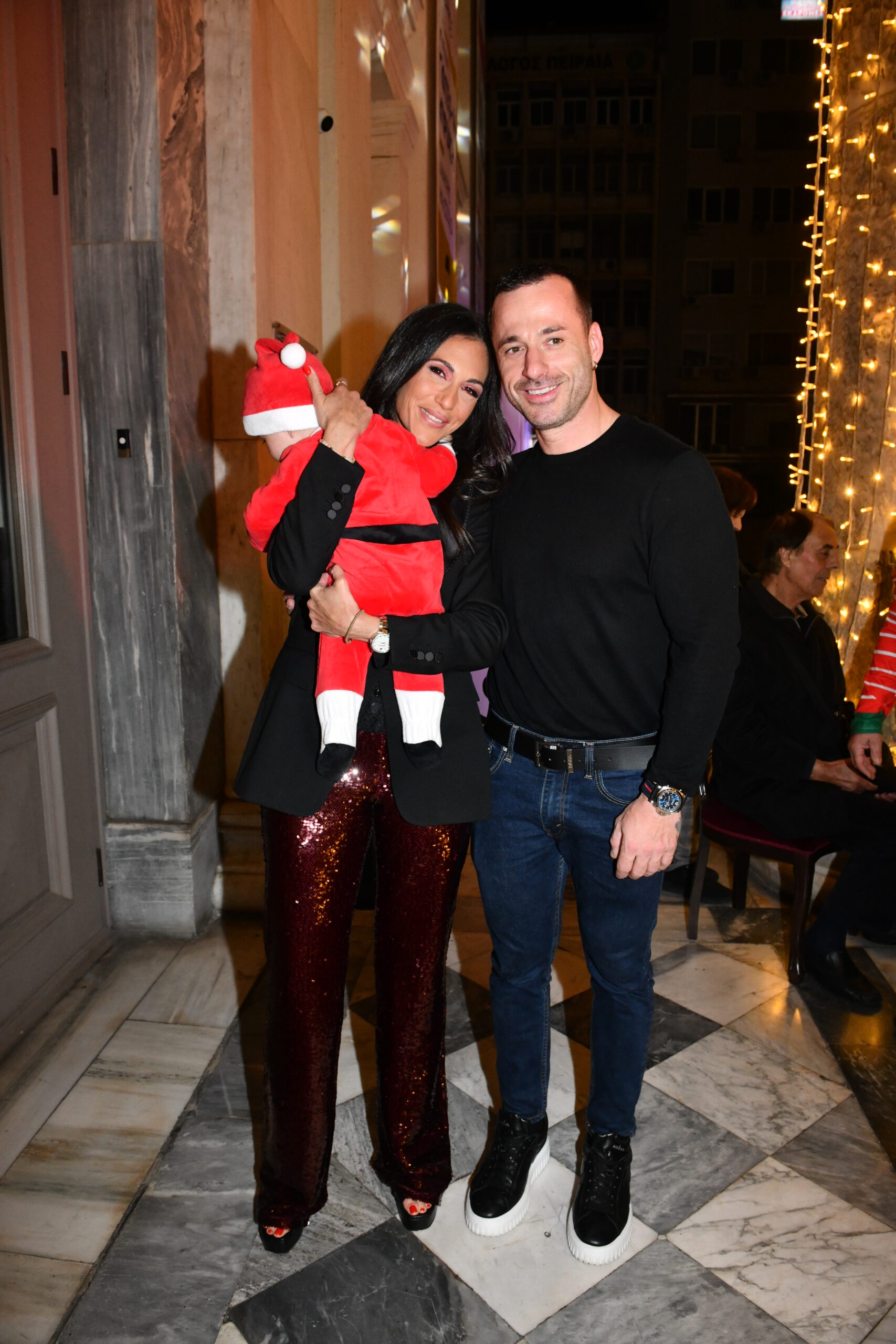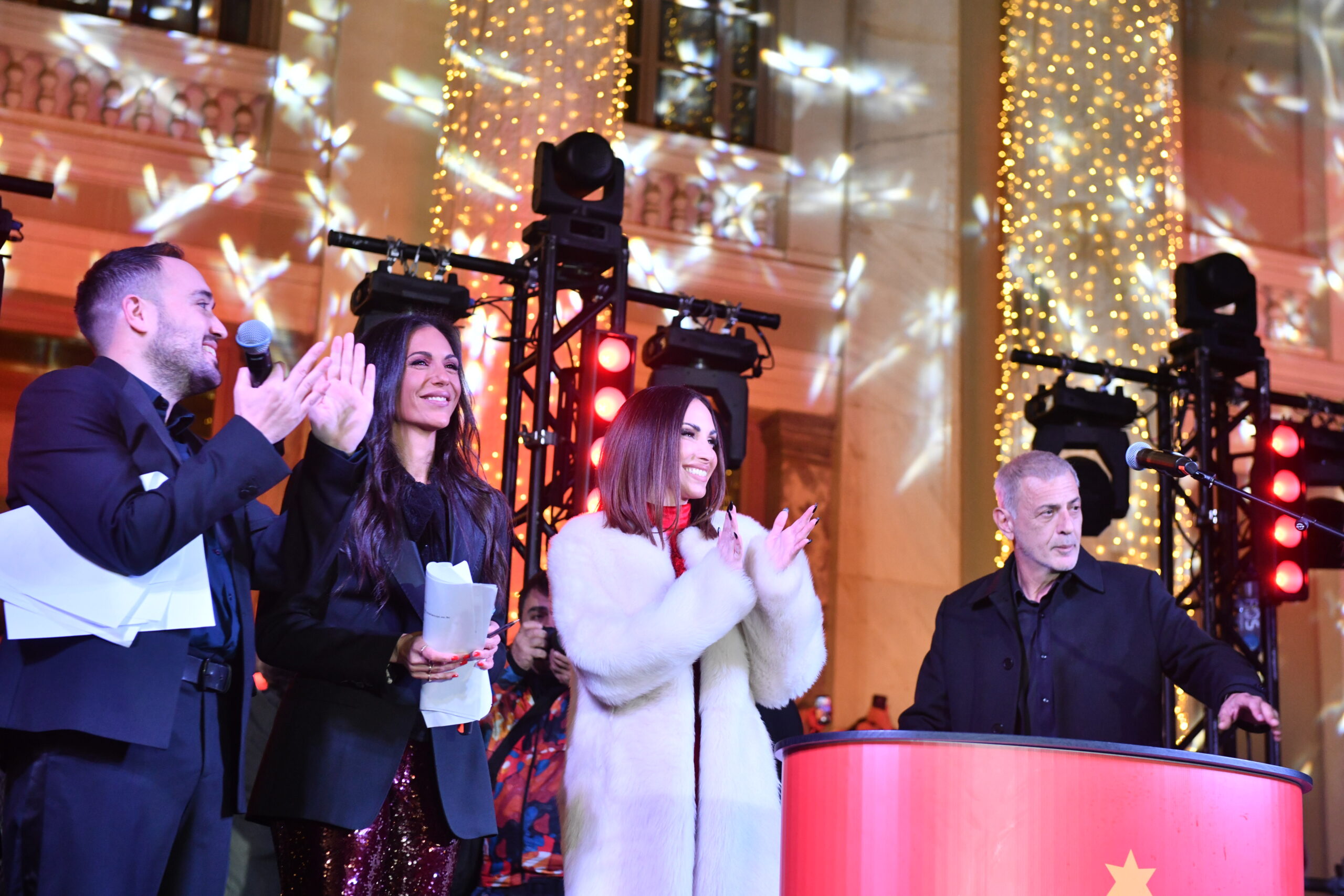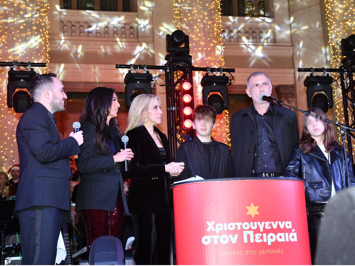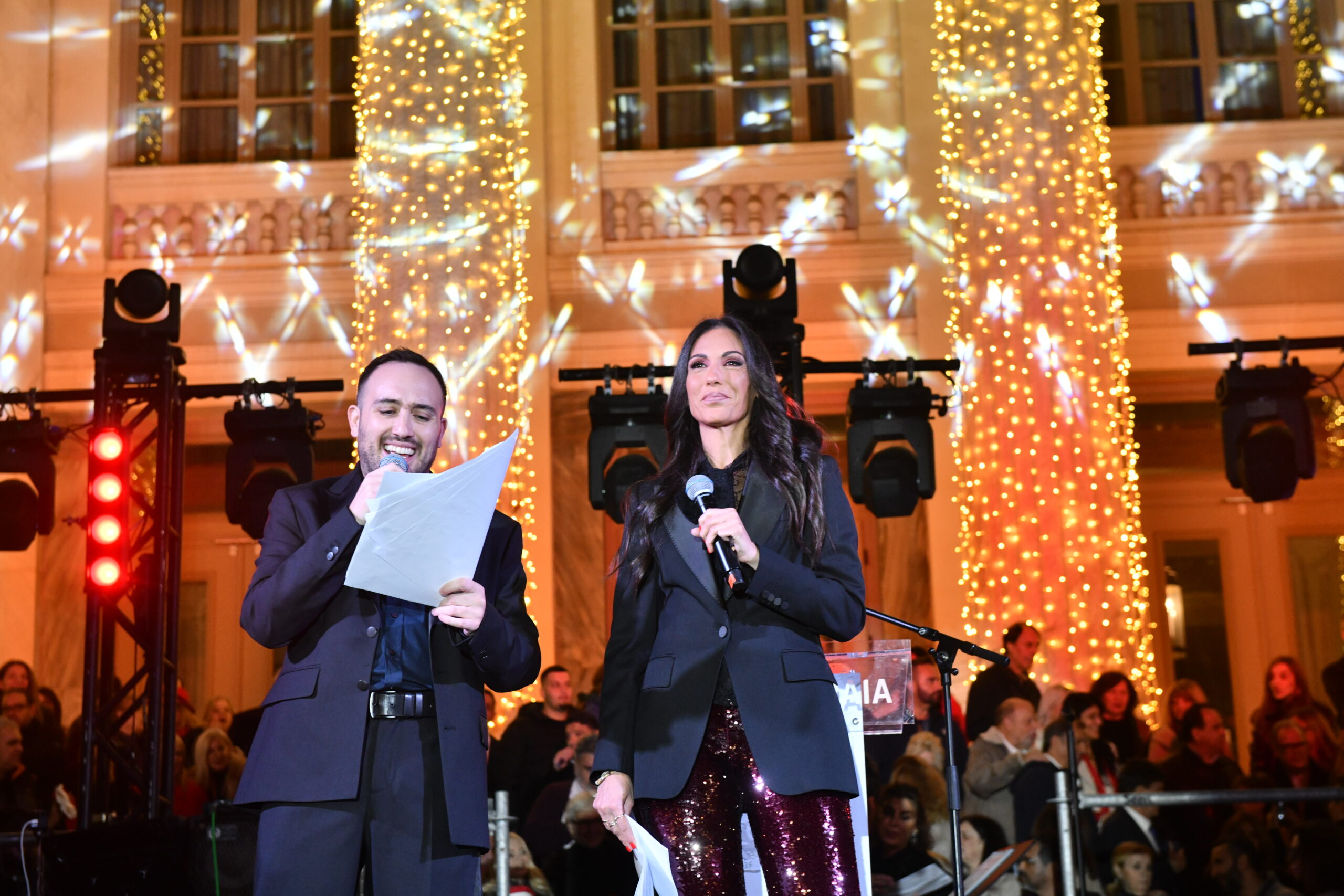 Η Ανθή Βούλγαρη με τον Χάρη Χρονόπουλο ήταν οι παρουσιαστές στην εκδήλωσης στον Πειραιά για τη φωταγώγηση του χριστουγεννιάτικου δέντρου.