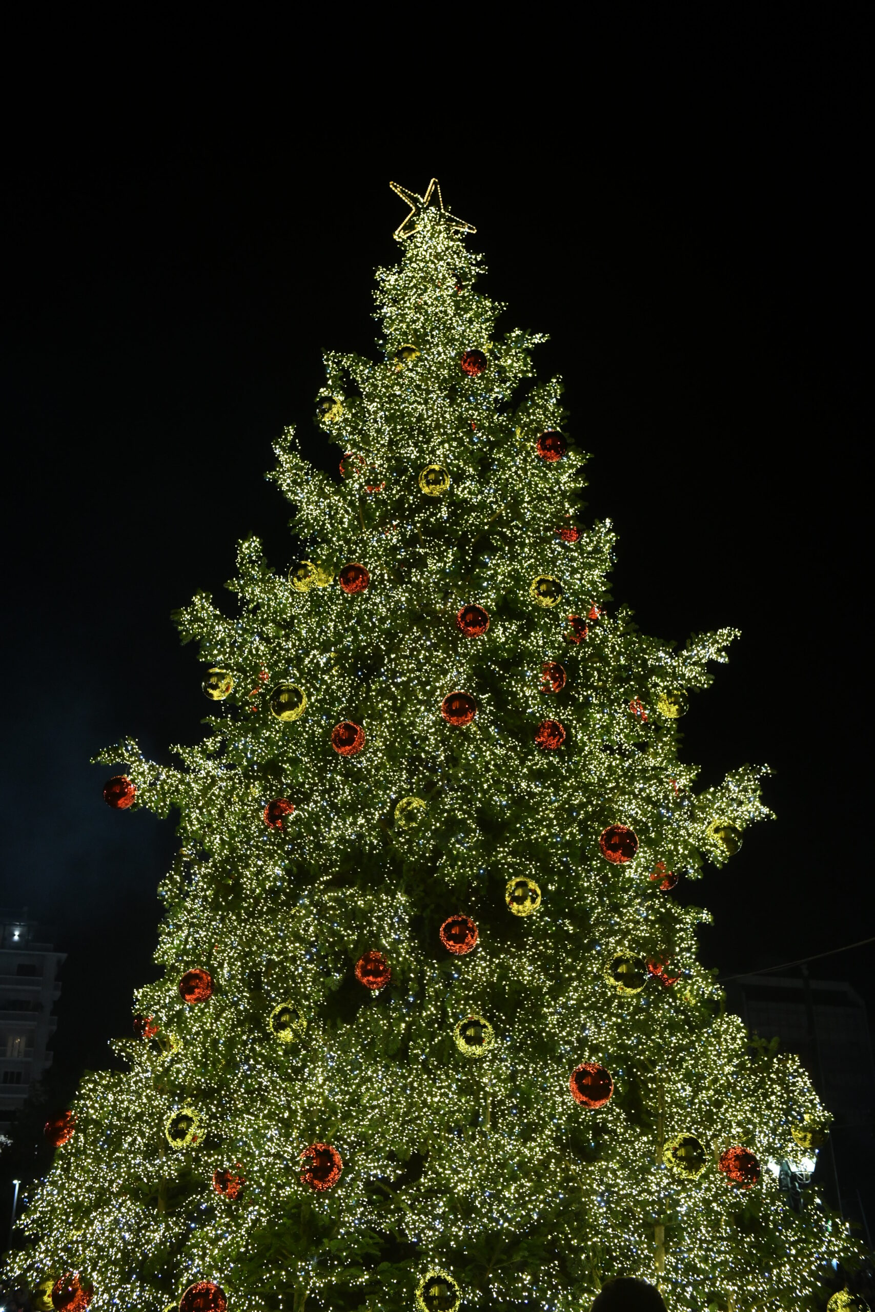 Στο κέντρο της πόλης δεσπόζει το εντυπωσιακό φυσικό έλατο ύψους 15 μέτρων από τον Ταξιάρχη Χαλκιδικής, στολισμένο με περισσότερα από 120.000 λαμπιόνια, που θα φωτίσει τον Πειραιά για όλη τη διάρκεια των εορτών.