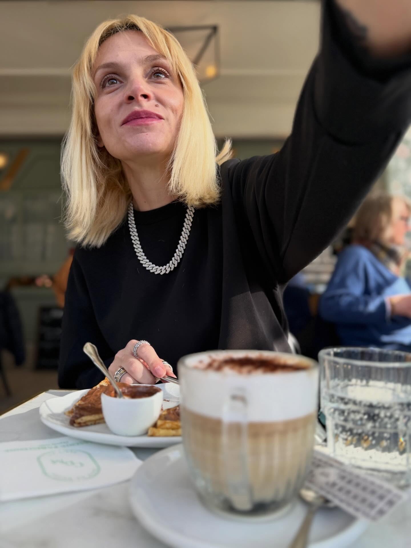 Οι βόλτες της περιλάμβαναν επίσης στάσεις σε δημοφιλή καφέ και γαστρονομικά σημεία της πόλης, όπου δοκίμασε παραδοσιακές γαλλικές λιχουδιές.