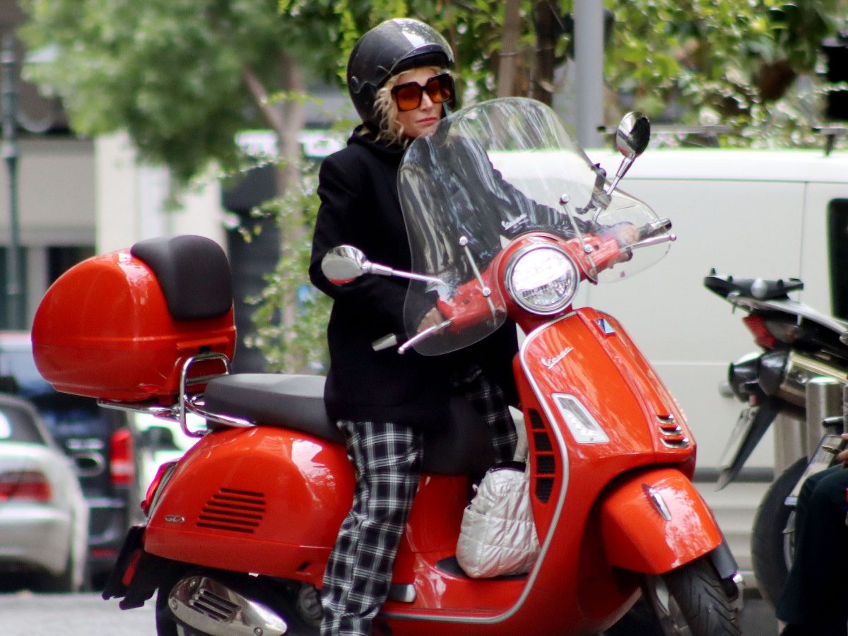 Όπως θα δεις στις φωτογραφίες, η τραγουδίστρια πήγε με το σκούτερ της, ήταν απασχολημένη με το κινητό της και έδειχνε ιδιαίτερα ευδιάθετη