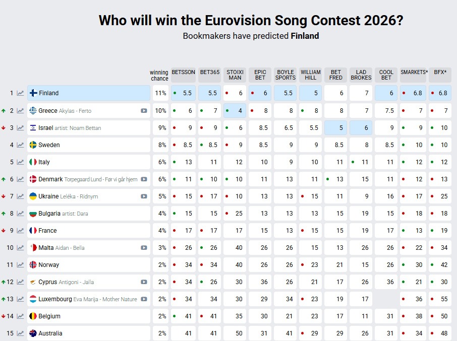 Ο 70ος διαγωνισμός της Eurovision θα διεξαχθεί στη Βιέννη τον προσεχή Μάιο και ήδη τα στοιχήματα έχουν αρχίσει να παίρνουν «φωτιά», παρά το γεγονός ότι δεν έχουν κυκλοφορήσει όλα τα υποψήφια τραγούδια.