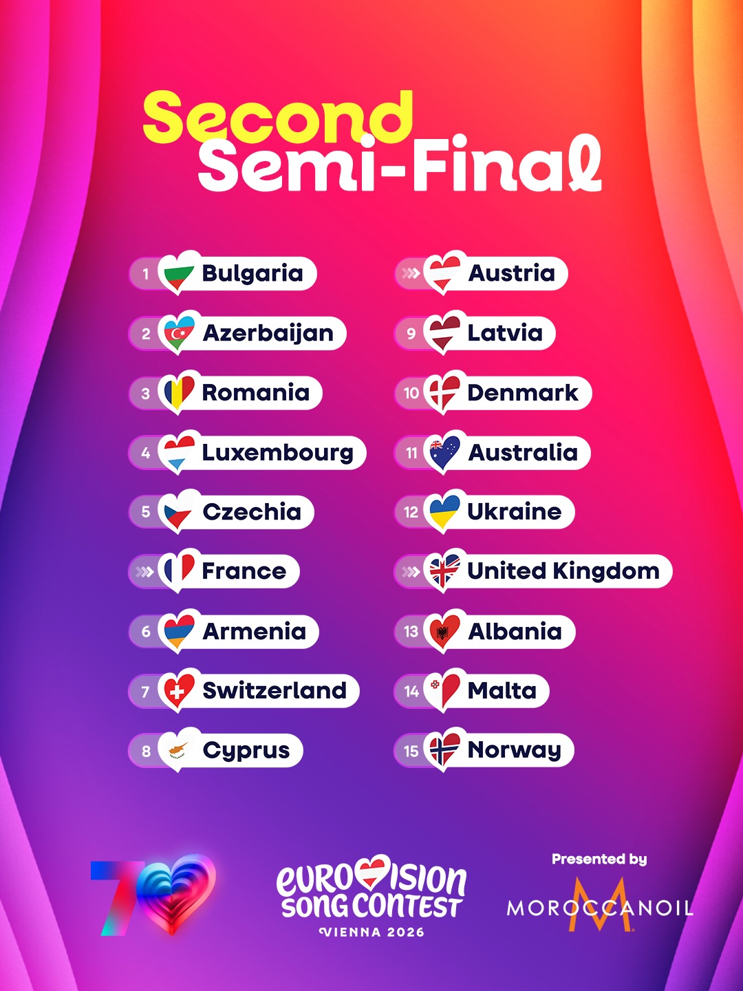 Το βράδυ της Πέμπτης 2 Απριλίου ανακοινώθηκε η σειρά εμφάνισης με τους δύο Ημιτελικούς της Eurovision 2026.