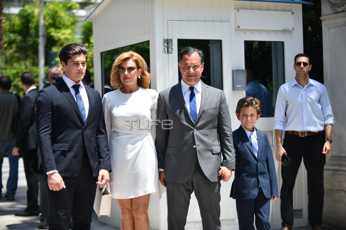 Ο Άδωνις Γεωργιάδης κατέφθασε στην ορκωμοσία της νέας κυβέρνησης του Κυριάκου Μητσοτάκη με την Ευγενία Μανωλίδου και τους δύο γιους τους, Αθανάσιο-Περσέα και Αλκαίο – Αναστάσιο.