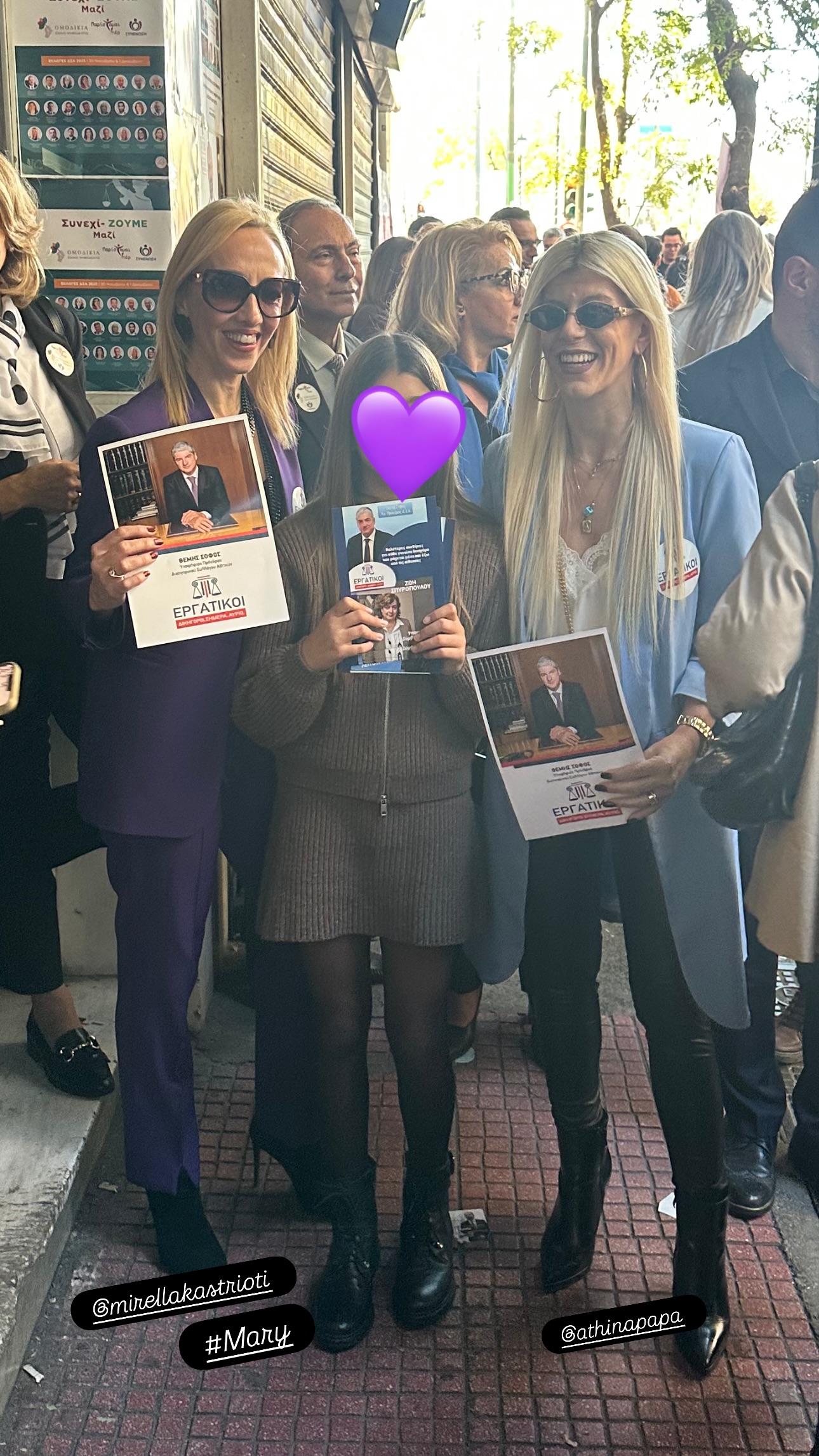 «Αν και δεν ψηφίζουμε στις εκλογές του Δικηγορικού Συλλόγου Αθηνών, βρεθήκαμε με χαρά στο πλευρό του μπαμπά μας οικογενειακώς», έγραψε στη λεζάντα της ανάρτησής της η Σταματίνα Τσιμτσιλή.