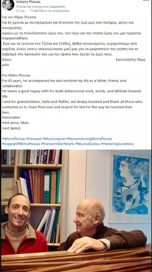 Και ο γιος του, Αντώνης Πλέσσας αποχαιρέτησε τον πατέρα του με μια συγκινητική ανάρτηση στα social media.
