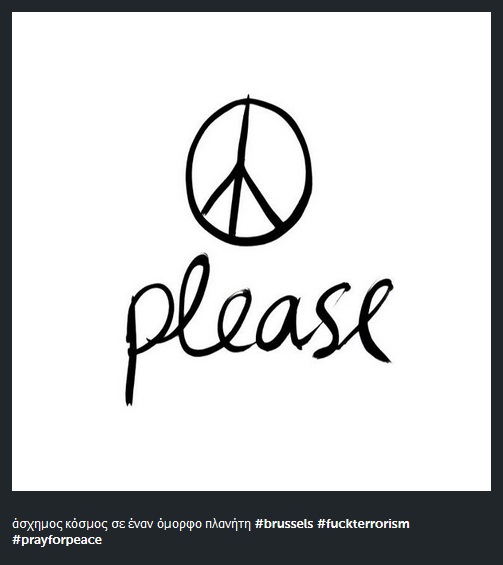 Μήνυμα συμπαράστασης στο λαό του Βελγίου μέσα από το instagram με το #PrayForBrussels