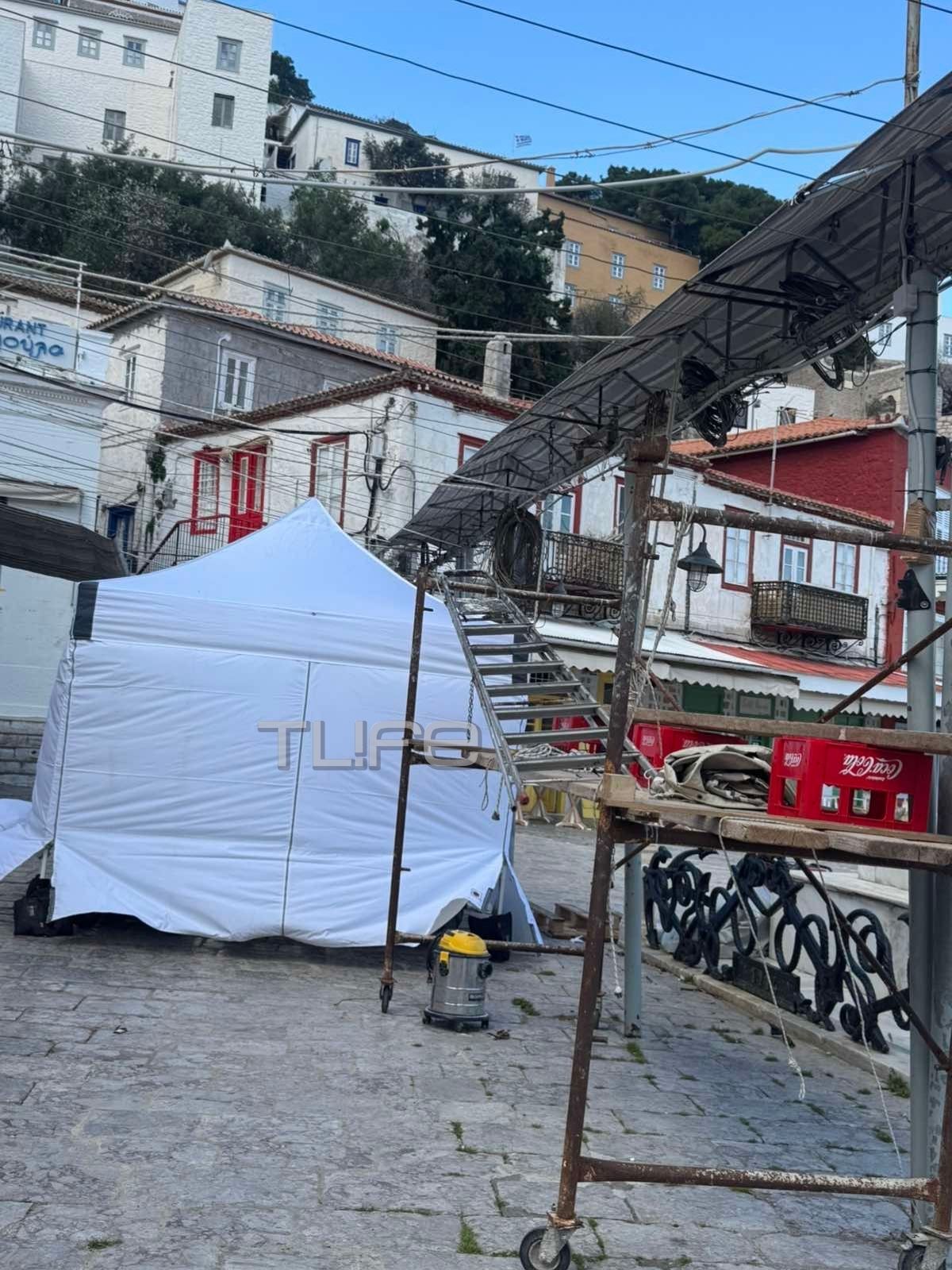 Οι άνθρωποι της παραγωγής και ηθοποιοί έχουν φτάσει στο νησί του Αργοσαρωνικού εδώ και ημέρες. Στενά δρομάκια, πλατείες και χαρακτηριστικά κτίρια αξιοποιούνται ως φυσικά πλατό για την ταινία που διαδραματίζεται στη δεκαετία του ’80.