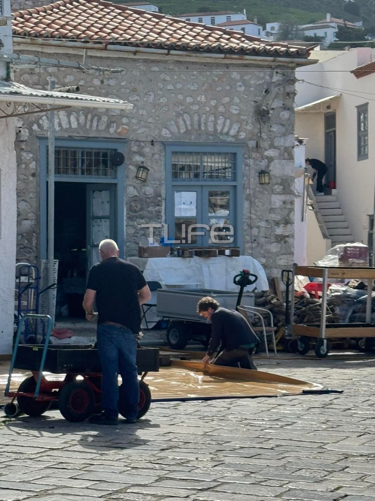Το συνεργείο που αριθμεί πάνω από 300 άτομα έχει ξεκινήσει την προετοιμασία, με τα σοκάκια του νησιού να αποτελούν σκηνικό της ταινίας. Όπως θα δεις στις φωτογραφίες που σου εξασφάλισε το TLIFE, έχει εγκατασταθεί μέχρι και σύστημα τεχνητής βροχής και αέρα για τα γυρίσματα του πολυαναμενόμενου έργου.