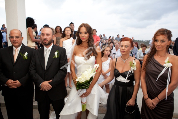 Το ζευγάρι ανέβηκε τα σκαλιά της εκκλησίας στην ιδιαίτερη πατρίδα του γαμπρού, την Κύπρο, στο ξωκλήσι των Αγίων Αναργύρων στο Κάβο Γκρέκο.
