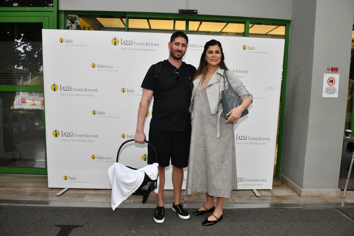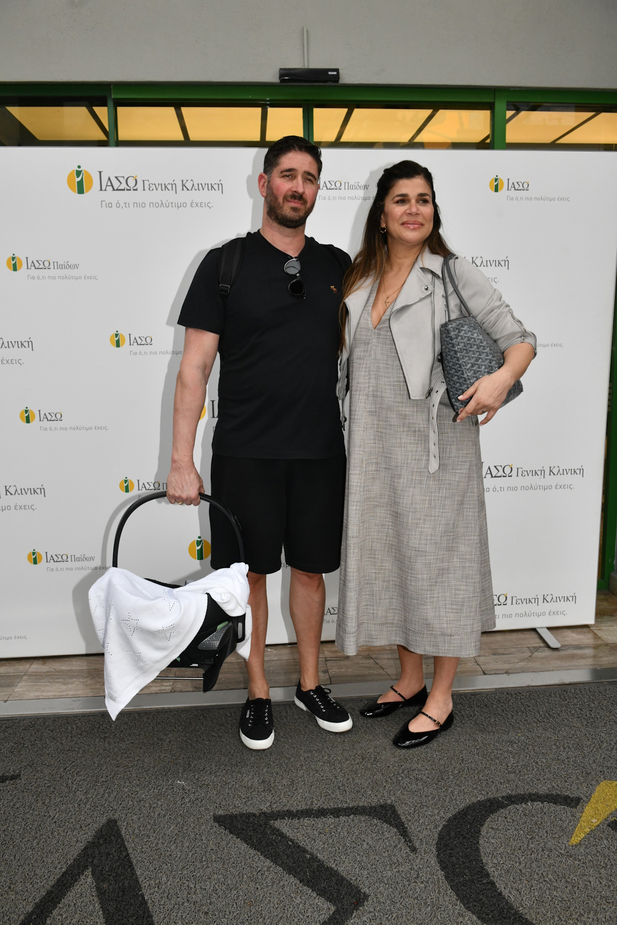 Εξιτήριο πήρε από το μαιευτήριο των βορείων προαστίων η Νεσχάν Μουλαζίμ. Στο πλευρό της ο σύζυγός της, Στέλιος Πολογεώργης, ο οποίος στάθηκε δίπλα της καθ΄ όλη τη διάρκεια της εγκυμοσύνης της.