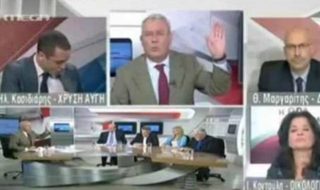 Ο εκπρόσωπος της Χρυσής Αυγής έφυγε από το τηλεοπτικό παράθυρο και… η πολιτική συζήτηση συνεχίστηκε με τους άλλους καλεσμένους.