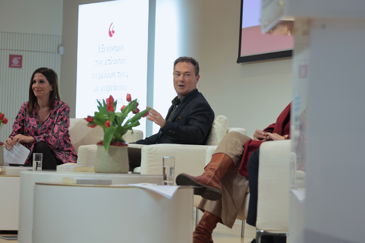Σε μία κατάμεστη αίθουσα, ο Οδυσσέας Αθανασίου αναφέρθηκε στην αγάπη του για την ανάγνωση βιβλίων ιστορίας και γεωπολιτικής, και την περιέργειά του για την τεχνητή νοημοσύνη, την οποία παρακολουθεί με τον ενθουσιασμό.