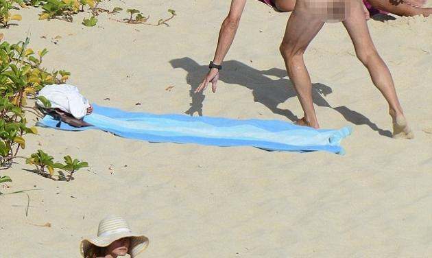 Οι δυο τους όμως έδειχναν να μη νοιάζονται για τους τριγύρω και είχαν μάτια μόνο ο ένας για τον άλλον! Το ζευγάρι απόλαυσε τον ήλιο κι ας φορούσε τα μαγιό του…