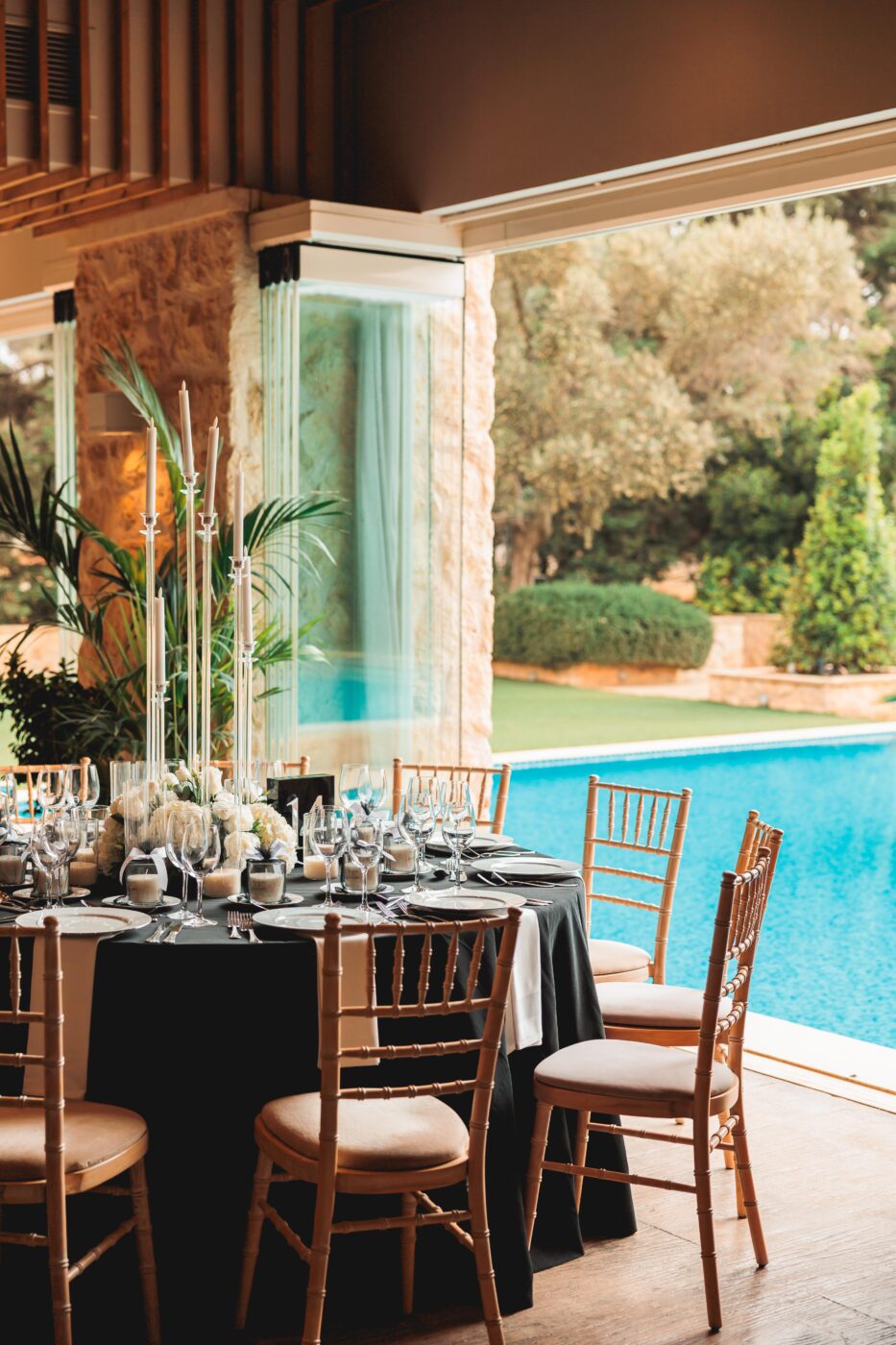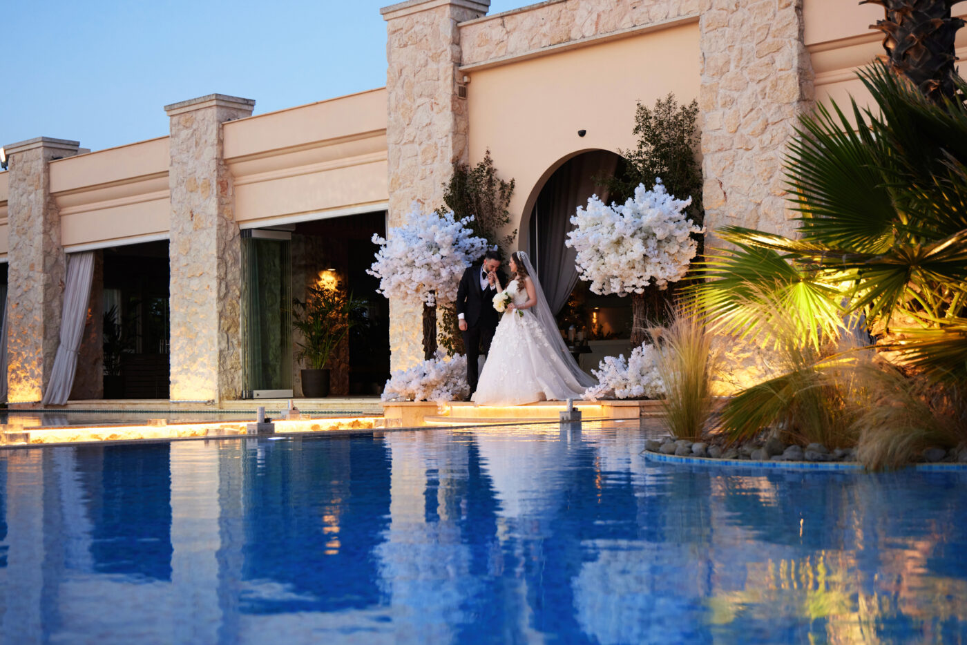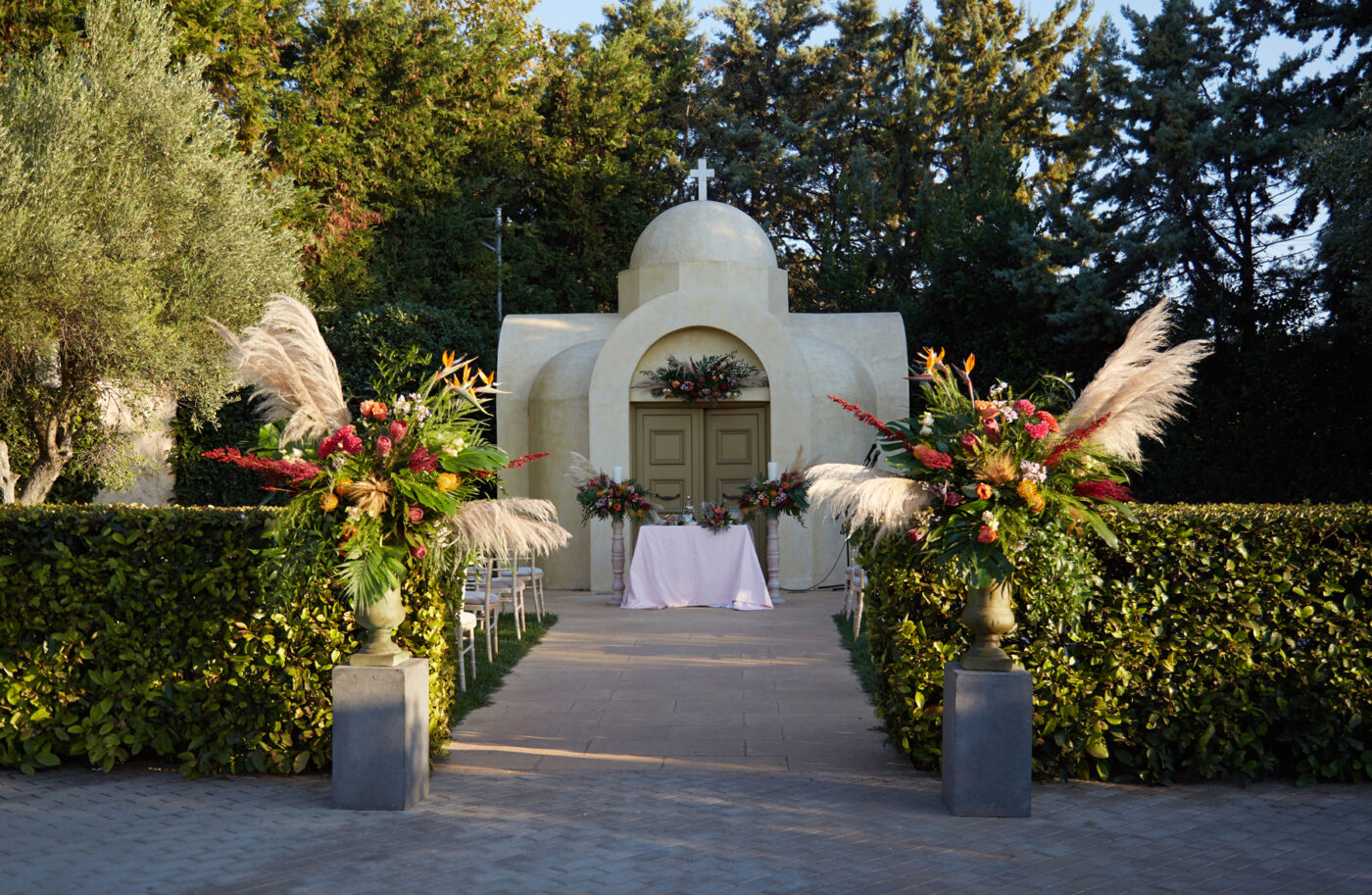 Φοίνικες, νερά που κυλούν απαλά, μικροί καταρράκτες και η γραφική εκκλησία της Αγίας Μαρίνας συνθέτουν ένα σκηνικό που συνδυάζει τη φύση με την κομψότητα. Εδώ ο γάμος αποκτά ρυθμό, ατμόσφαιρα και συναίσθημα, χωρίς υπερβολές, αλλά με απόλυτη αισθητική ισορροπία.