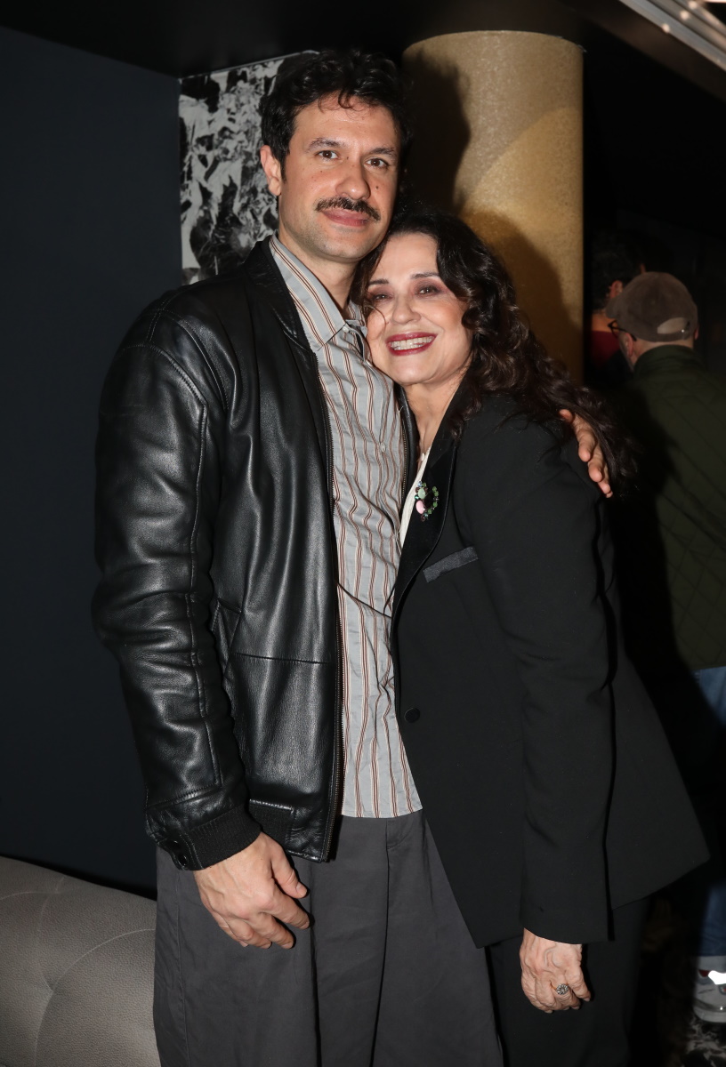Μαμά και γιος πόζαραν αγκαλιασμένοι μετά το τέλος της παράστασης, ενώ η Μαρία Τζομπανάκη δεν έχασε την ευκαιρία να φωτογραφηθεί και με τη νύφη της, στην οποία έχει τεράστια αδυναμία.