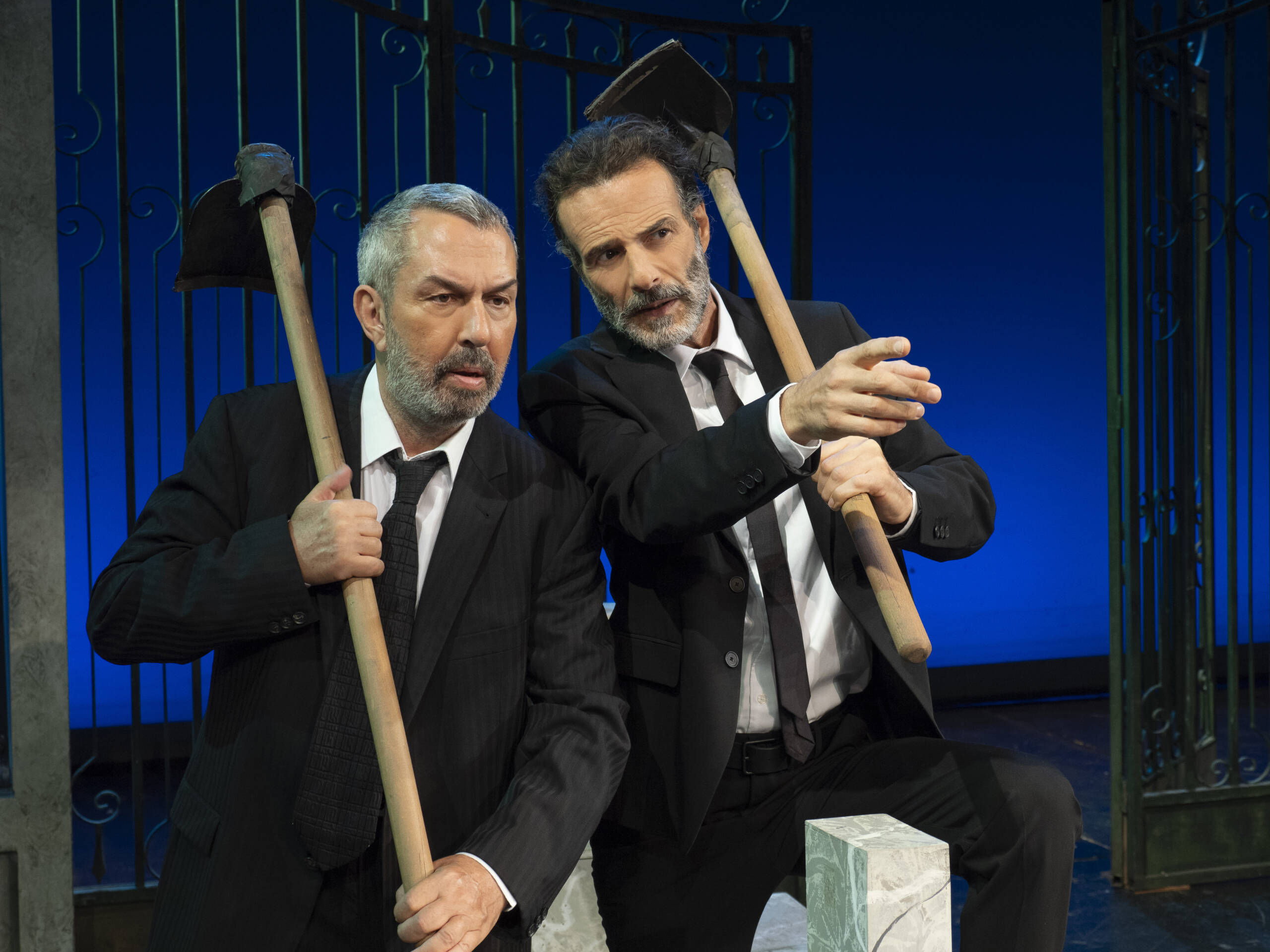 Η σκηνοθεσία του Νικορέστη Χανιωτάκη, σε συνδυασμό με την παραγωγή των Αθηναϊκών Θεάτρων, προσφέρει μια παράσταση γεμάτη ενέργεια και ακρίβεια στις σωματικές κωμικές σκηνές, ενώ οι ερμηνείες των βασικών ηθοποιών – Ιωάννης Απέργης, Κατερίνα Γερονικολού, Παναγιώτης Γουρζουλίδης, Δημήτρης Κουρούμπαλης, Θάνος Μπίρκος, Αρετή Πασχάλη, Θάνος Σκόπας, Γιάννης Στεφόπουλος, Γιώργος Χρανιώτης – απογειώνουν το έργο. Κάθε τους κίνηση, κάθε ατάκα και κάθε αντίδραση είναι μελετημένη ώστε να δημιουργεί το τέλειο κωμικό αποτέλεσμα, κρατώντας το κοινό αμείωτα «κρεμασμένο» από το γέλιο και την αγωνία μέχρι την τελευταία στιγμή.