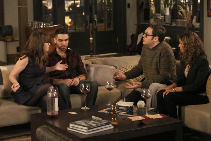Συγκεκριμένα, η Τζες, ο χαρακτήρας που υποδύεται η Ζόι Ντεσανέλ (Zooey Deschanel), βγαίνει ραντεβού με τον Σταύρο, που υποδύεται ο George Lako. Πρόκειται για double date με ένα ακόμα “ζευγάρι”.