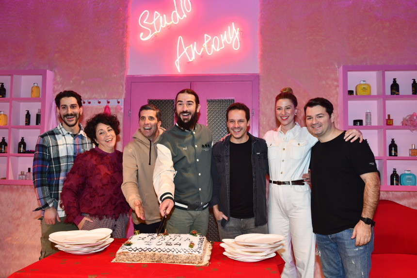 Οι πρωταγωνιστές και συντελεστές της παράστασης «Σεσουάρ για Δολοφόνους» στο θέατρο Λαμπέτη μαζεύτηκαν το απόγευμα της Τετάρτης 31 Ιανουαρίου για την κοπή της πρωτοχρονιάτικης πίτας.