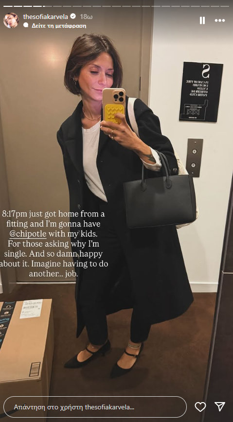 «8:17 και μόλις γύρισα σπίτι από μία πρόβα και θα απολαύσω ένα μεξικάνικο με τα παιδιά μου. Για όσους αναρωτιούνται γιατί είμαι single. Και τόσο χαρούμενη για αυτό. Φανταστείτε να είχα να κάνω και άλλη δουλειά», έγραψε η Σοφία Καρβέλα η οποία έχει αποκτήσει με δύο γιους από τον γάμο της με τον Θανάση Πανουργιά.
