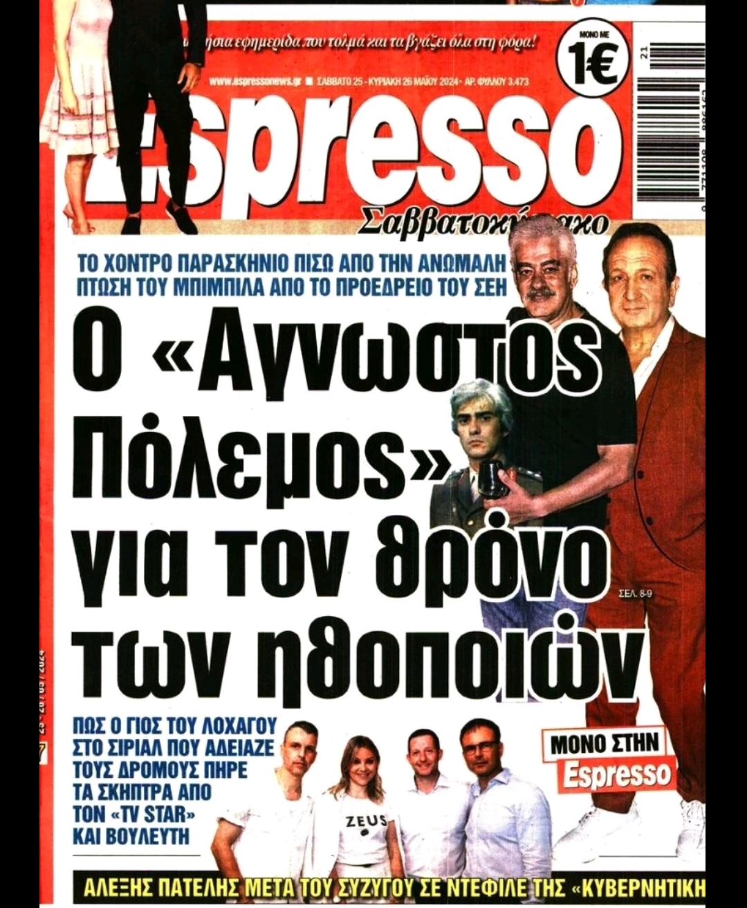 «Το χοντρό παρασκήνιο πίσω από την ανώμαλη πτώση του Μπιμπίλα από το προεδρείο του ΣΕΗ – Ο «άγνωστος πόλεμος» για τον θρόνο των ηθοποιών» είναι ο τίτλος που κοσμεί το πρωτοσέλιδο της εφημερίδας Espresso, που έκανε τον Σπύρο Μπιμπίλα να αντιδράσει.