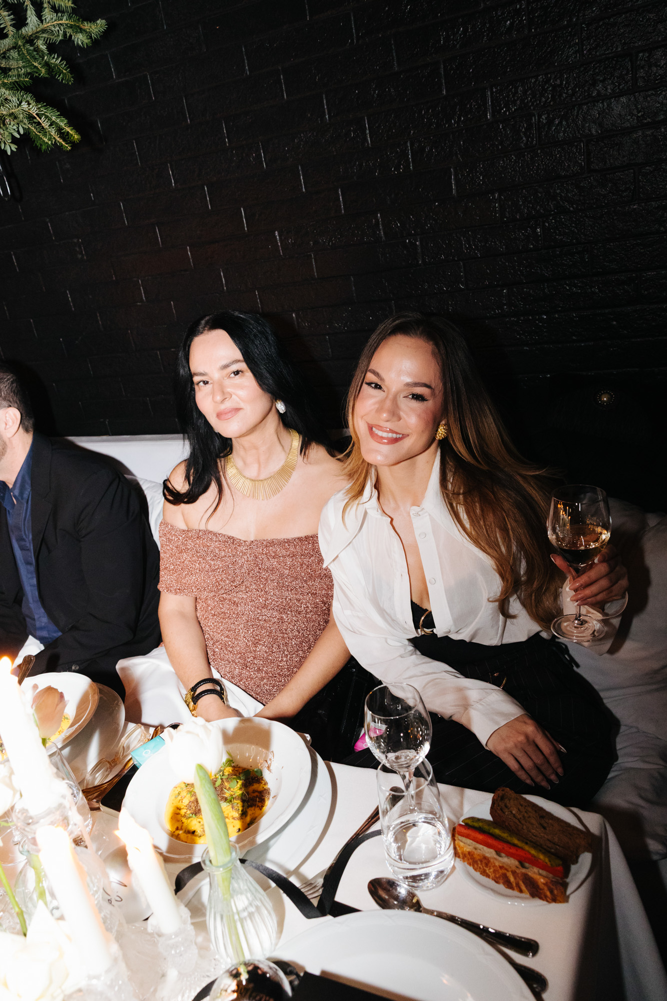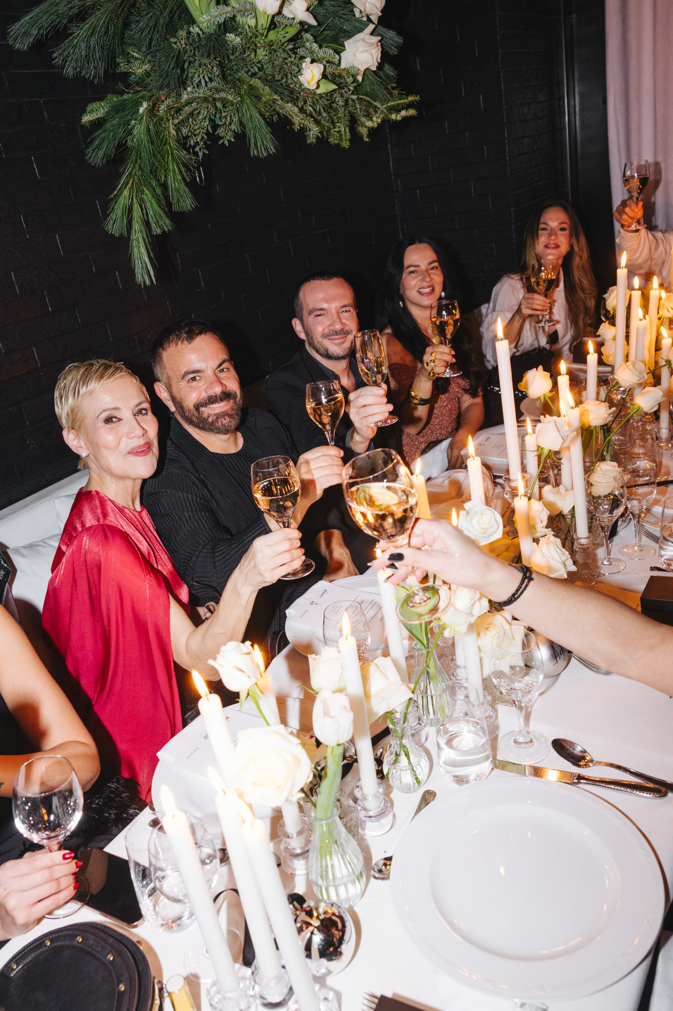 Στη συνέχεια, το δείπνο πραγματοποιήθηκε σε private location, απέναντι από το κατάστημα. Το μενού κινήθηκε σε λογική fine dining, ενώ η ατμόσφαιρα συνδύαζε επισημότητα, ζεστασιά και σύγχρονη αισθητική — ένα format που θυμίζει αντίστοιχες συναντήσεις μόδας στο εξωτερικό, αλλά με ξεκάθαρα ελληνική υπογραφή.