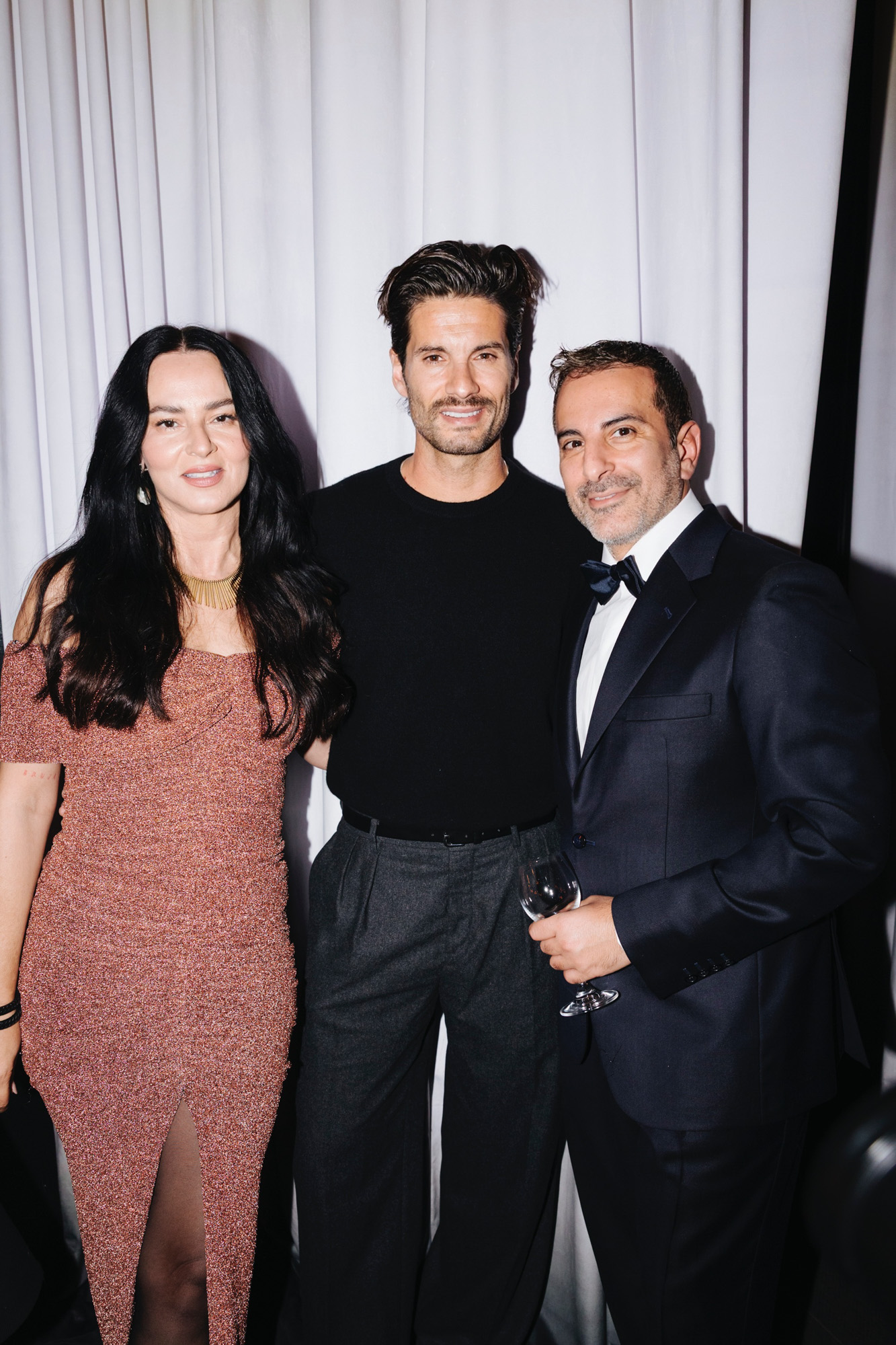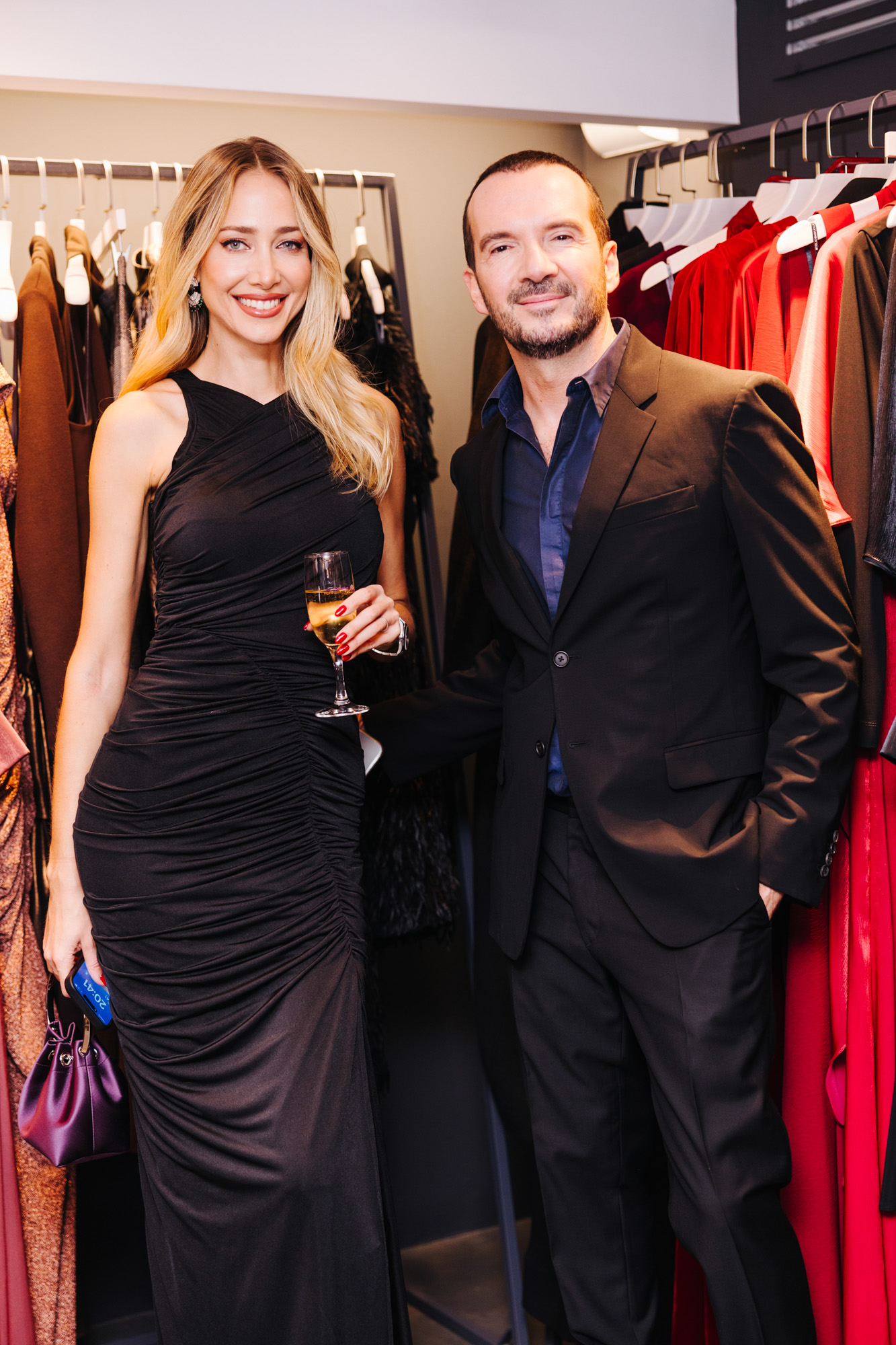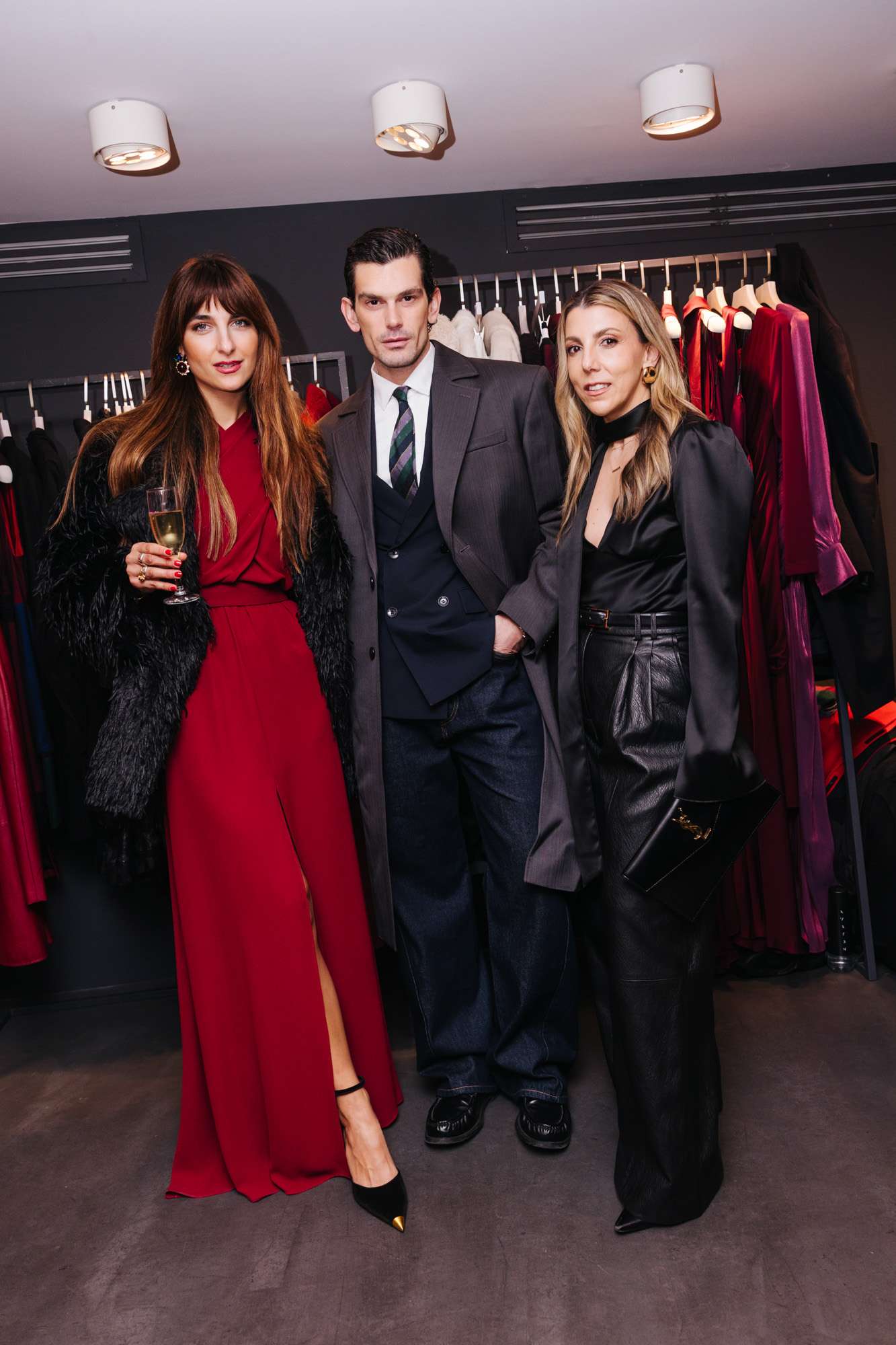Οι καλεσμένοι συγκεντρώθηκαν αρχικά στο κατάστημα του σχεδιαστή, όπου είδαν από κοντά επιλεγμένα βραδινά κομμάτια της συλλογής — διαθέσιμα σε περιορισμένο αριθμό και αποκλειστικά στο φυσικό κατάστημα.