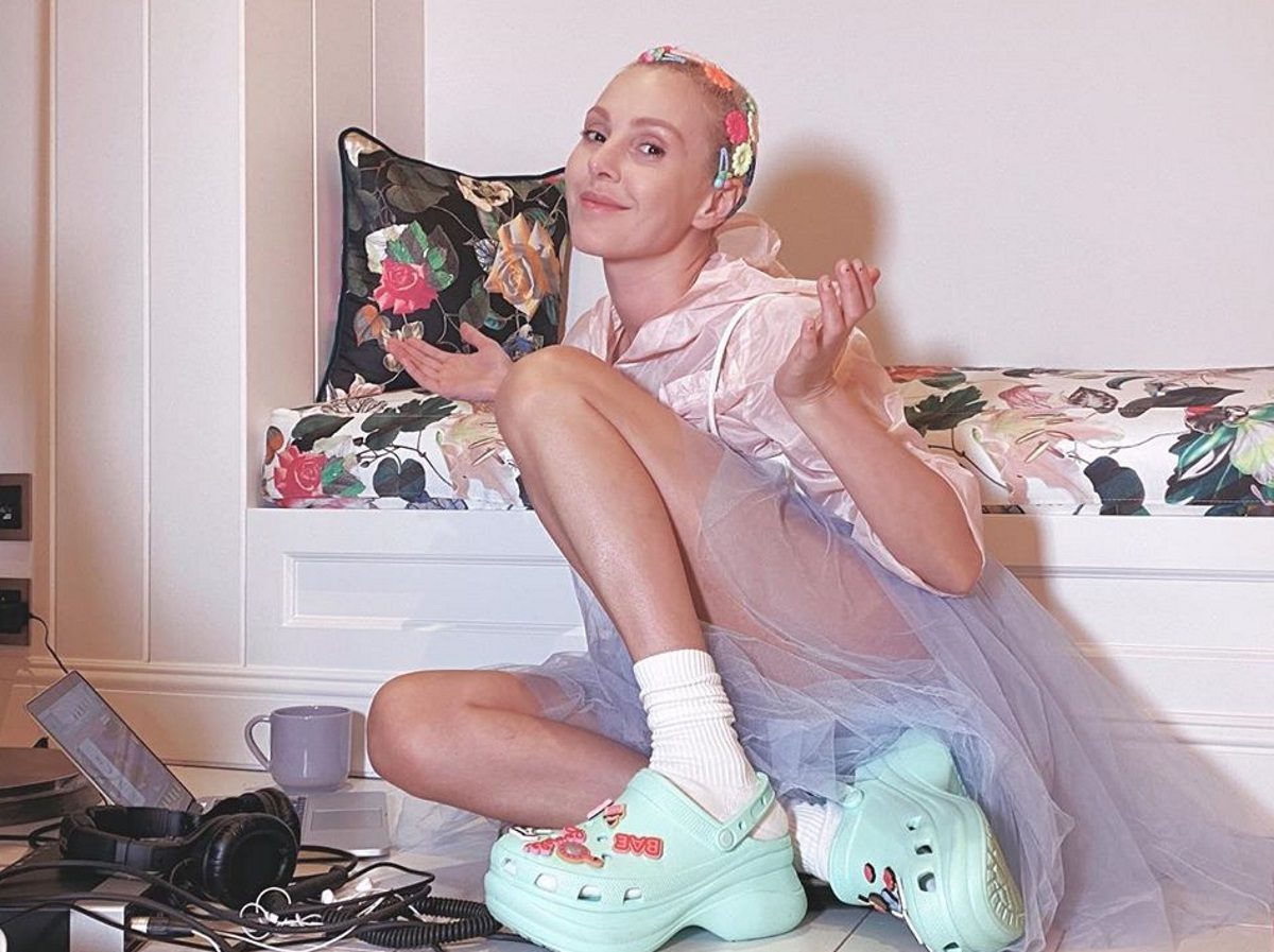 “Εδώ στο σπίτι, σ’ ένα πρόχειρο μίνι στούντιο… παλεύω και μαλώνω με την τεχνολογία πολλές ώρες την ημέρα για να κάνω μία δουλειά που υπό κανονικές συνθήκες θα έκανα με τους ανθρώπους που γνωρίζουν το αντικείμενο. Συνήθως αυτά τα πράγματα γίνονται πολύ πιο γρήγορα και πολύ πιο εύκολα… Κάπως καταφέρνω όμως σιγά-σιγά Και μαθαίνω πολλά”, σημείωσε χαρακτηριστικά στη λεζάντα της ανάρτησής της.