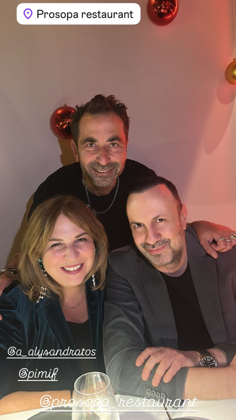 Φυσικά από το γενέθλιο δείπνο του Τάσος Τρύφωνος δεν έλειπαν και οι στενοί του φίλοι και συνεργάτες, όπως η Κική Τσόλκα της Minos EMI και σύζυγος Γιώργος Χατζηπέτρου αλλά και η Πίμη Φασούλα, η head PR του Alpha και ο Ανδρέας Αλυσσανδράτος.