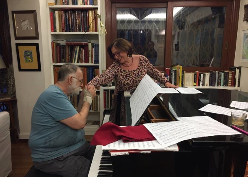 “Όταν έγραφα την όπερα «Η επιστροφή της Ελένης», τον εγκλώβισα. Η μάχη που δίνουμε είναι για να εγκλωβίσουμε τον χρόνο, είτε μέσα από τη δουλειά μας είτα από κάθε προσωπική στιγμή -αυτό έκανα και θα εξακολουθήσω να κάνω. 4,160 Σαββατοκύριακα, 80 χρόνια περνάνε στο πι και φι. Το λέω σε όλους όσοι παλεύουν με τον καρκίνο ότι έτσι πρέπει να συμπεριφέρονται. Δεν μπορώ να πω εάν φοβάμαι ή όχι τον θάνατο. Δεν θέλω να παίξω τον ήρωα. Ξέρω όμως ότι αθάνατος δεν είναι κανένας. Ίσως έχω ζήσει με βιωμένο πυκνό χρόνο πολύ περισσότερο από τα χρόνια που είμαι. Μπορεί όταν παίζω τους «Επτά νάνους» να φαίνομαι πολύ νέος -έτσι αλλάζω τη διαδικασία, κοιτάω τα πράγματα που με κάνουν ευτυχισμένο. Είμαι πάρα πολύ ευτυχής με την οικογένειά μου, με τους φίλους μου, με τον κόσμο ο οποίος συμπεριφέρεται με μια διακριτικότητα και αγάπη άνευ προηγουμένου. Είμαι μαχητής, εμπιστεύομαι τον γιατρό μου και την ιατρική και φύγαμε, πάμε”, είπε στην ίδια συνέντευξη.