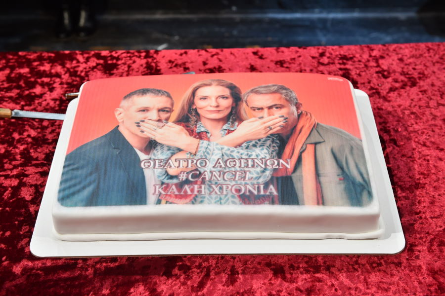 Οι πρωταγωνιστές της θεατρική παράστασης Cancel το απόγευμα της Τετάρτης 14 Ιανουαρίου έκοψαν την πίτα για το νέο έτος, ανταλλάσσοντας τις ευχές τους.