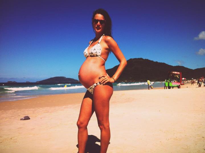 Το διάσημο μοντέλο απολαμβάνει το μπάνιο της στην παραλία λίγο πριν γεννήσει!