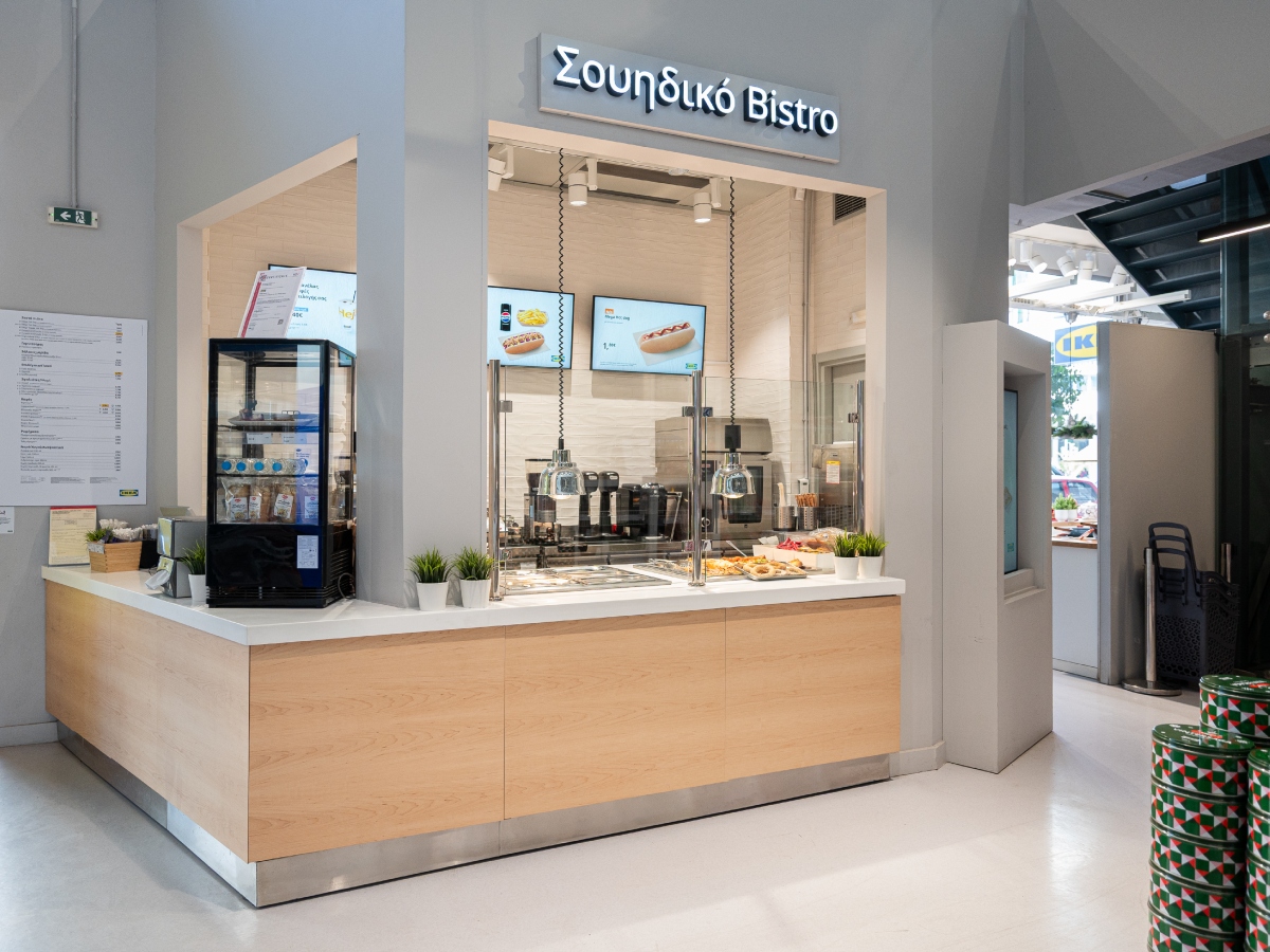 Το Bistro λειτουργεί πλέον αποκλειστικά με take away, προσφέροντας όλες τις κλασικές αγαπημένες γεύσεις ΙΚΕΑ, από τα iconic hot dog και κεφτεδάκια έως σνίτσελ, καφέ, σφολιάτες, ρολά κανέλας και muffins. Το νέο concept δίνει τη δυνατότητα στους επισκέπτες να απολαύσουν γρήγορα ένα νόστιμο snack ή ένα ρόφημα, χωρίς να χάνουν χρόνο από την εξερεύνηση του καταστήματος.