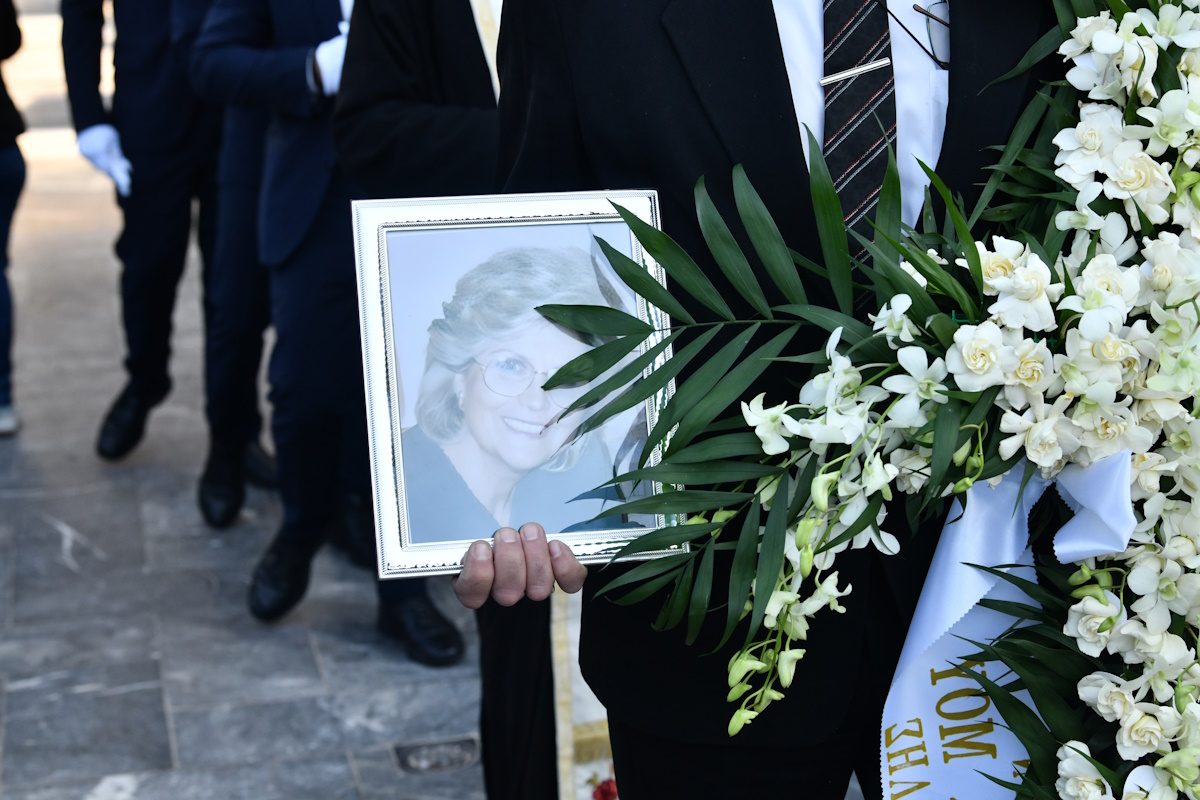 Πλήθος κόσμου βρέθηκε στον Ιερό Ναό του Αγίου Νικολάου Πειραιά για να αποχαιρετήσει με συγκίνηση την Ειρήνη Μαρινάκη, σύζυγο του Μιλτιάδη Μαρινάκη και μητέρα του Βαγγέλη Μαρινάκη, κατά τη διάρκεια της Εξοδίου Ακολουθίας.