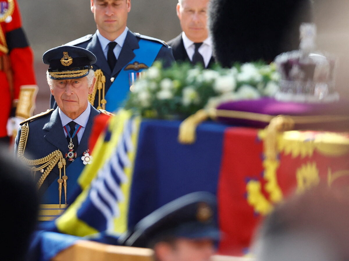 Στις 16:22 ακριβώς η λαμπρή αλλά σιωπηλή πομπή ξεκίνησε από το Μπάκινγχαμ προς την κεντρική αίθουσα του βρετανικού κοινοβουλίου όπου η σορός της Βασίλισσας θα εκτεθεί σε λαϊκό προσκύνημα.