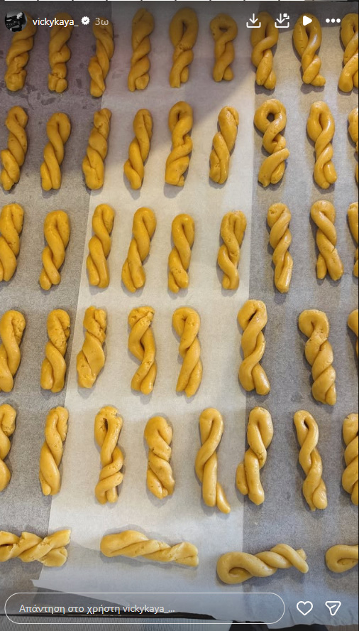Το γνωστό μοντέλο-παρουσιάστρια και επιχειρηματίας μοιράστηκε με τους διαδικτυακούς της φίλους ένα στιγμιότυπο από τη διαδικασία, δείχνοντας τα ταψιά γεμάτα με καλοσχηματισμένα κουλουράκια, έτοιμα για ψήσιμο. Με απλές κινήσεις και πολλή αγάπη, η ίδια φαίνεται πως απόλαυσε τη διαδικασία, δίνοντας μια πιο προσωπική και οικογενειακή διάσταση στις ημέρες πριν το Πάσχα. Άλλωστε, για τη Βίκυ Καγιά, η οικογένεια αποτελεί πάντα προτεραιότητα και τέτοιες στιγμές έχουν ξεχωριστή σημασία για εκείνη.