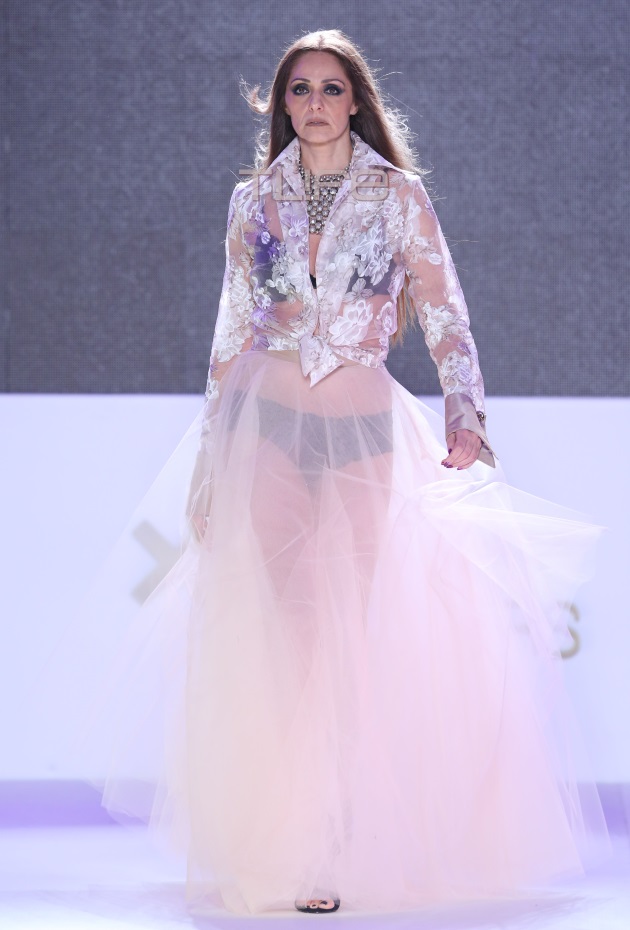 H χαρά και ο ενθουσιασμός της στην πασαρέλα έγινε φανερός κατά το φινάλε του show. Φορώντας μια νυφική δημιουργία του σχεδιαστή και κρατώντας τον από το χέρι περπάτησε αγέρωχη και χαμογελαστή στο πλάι του και τον ευχαρίστησε για την συνεργασία τους με ένα φιλί στο στόμα.