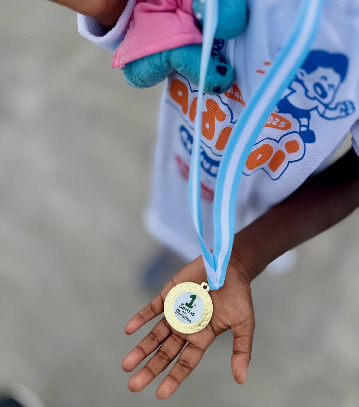 Όπως φαίνεται και στις φωτογραφίες, μητέρα και κόρη φόρεσαν τα αθλητικά τους, έτρεξαν μαζί με άλλους γονείς και παιδιά και στο τέλος φωτογραφήθηκαν χαμογελαστές, κρατώντας τα μετάλλιά τους.