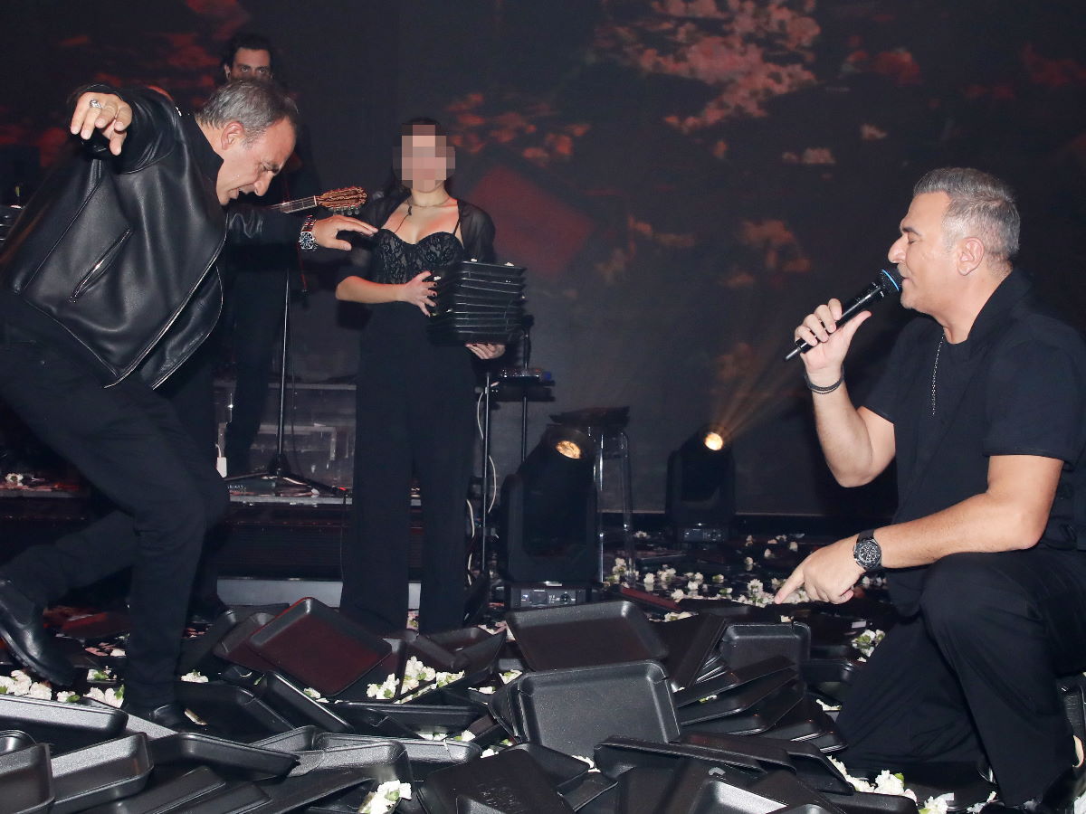 Κατά την διάρκεια της βραδιάς, ο τραγουδιστής βρέθηκε στο τραπέζι στο οποίο διασκέδαζε η Υβόννη Μπόσνιακ με την παρέα της, ανταλλάσσοντας παθιασμένα φιλιά μπροστά στο φωτογραφικό φακό.